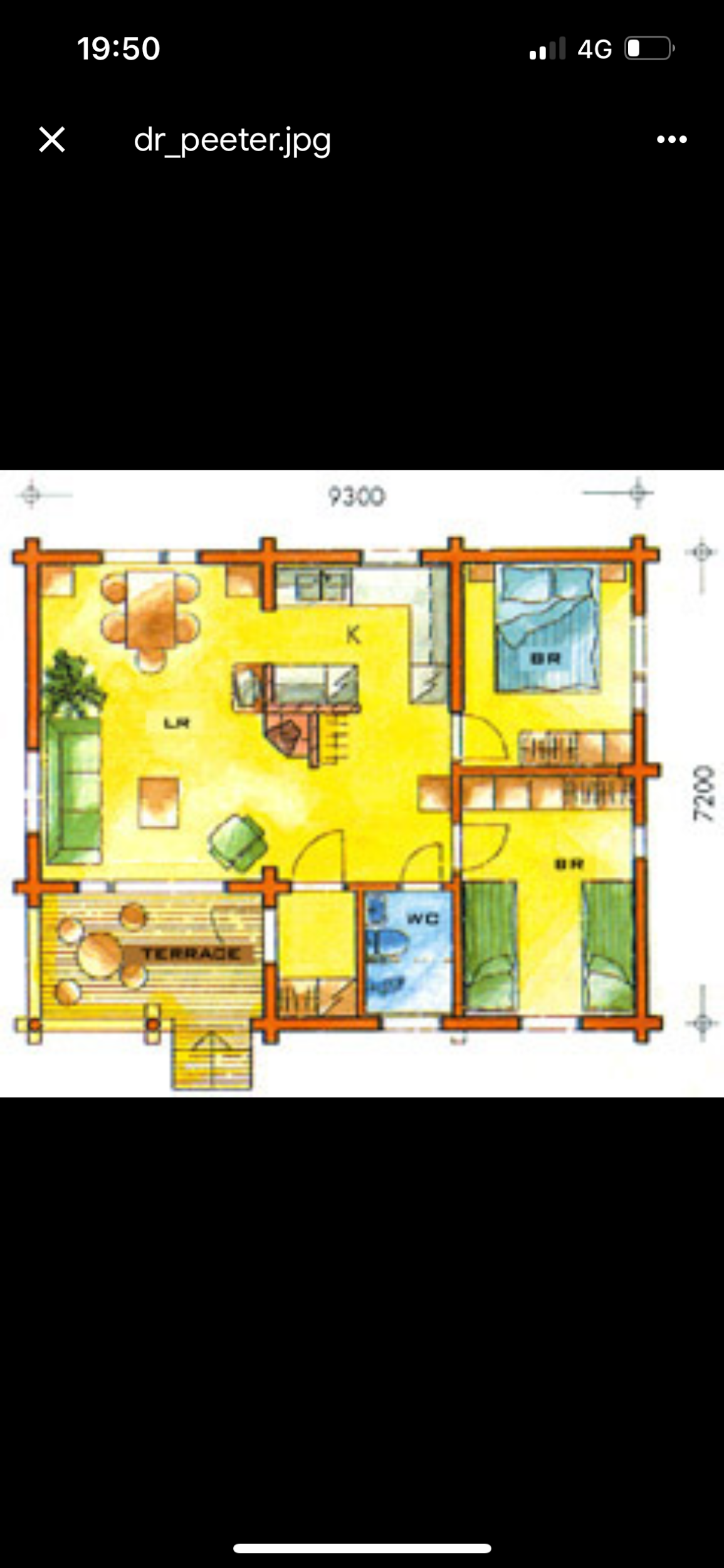 Maja mõõdud 8,7 x 6,6m kõrgusega 4,5m (57,42 m2)