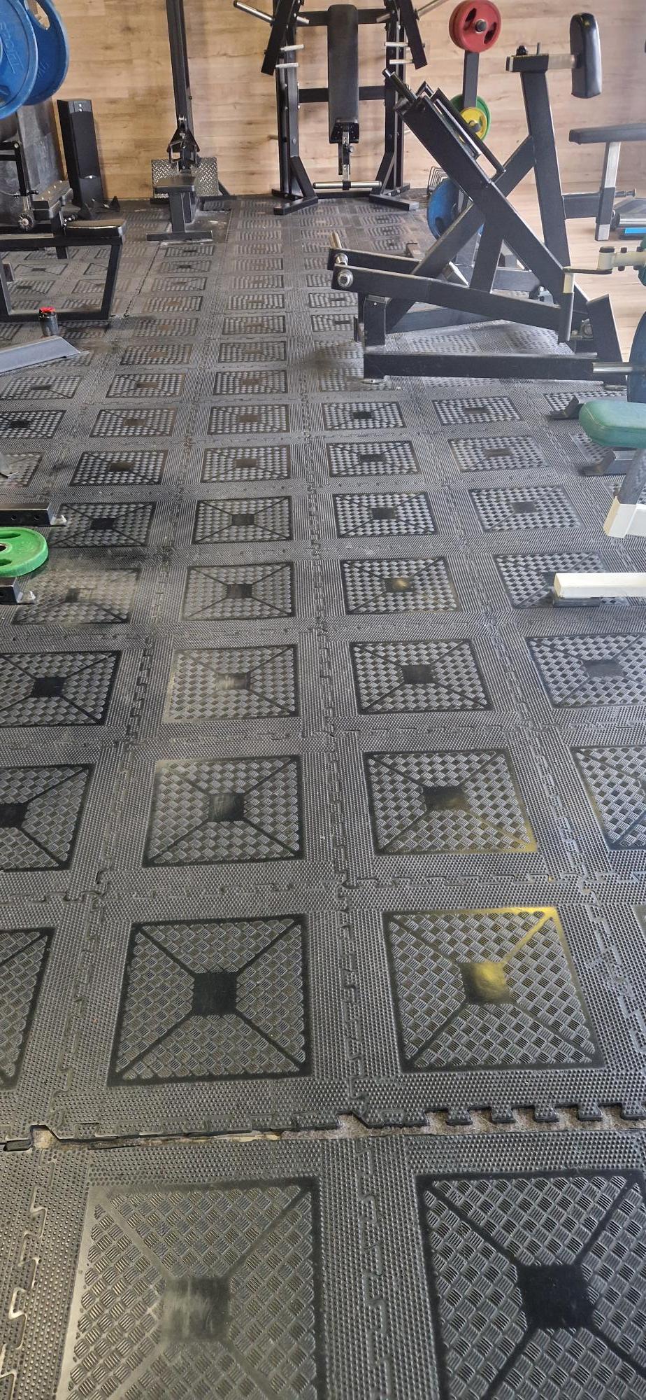 Esiteks on vaja eemaldada 20 m2 laminaatparketid ja 70 m2 vanu kuimmimatte ning tasandada põrandat 10 m2 ning siis laduda 20x1000x1000mm mustad ühelt poolelt siledad kummimatid 90m2.