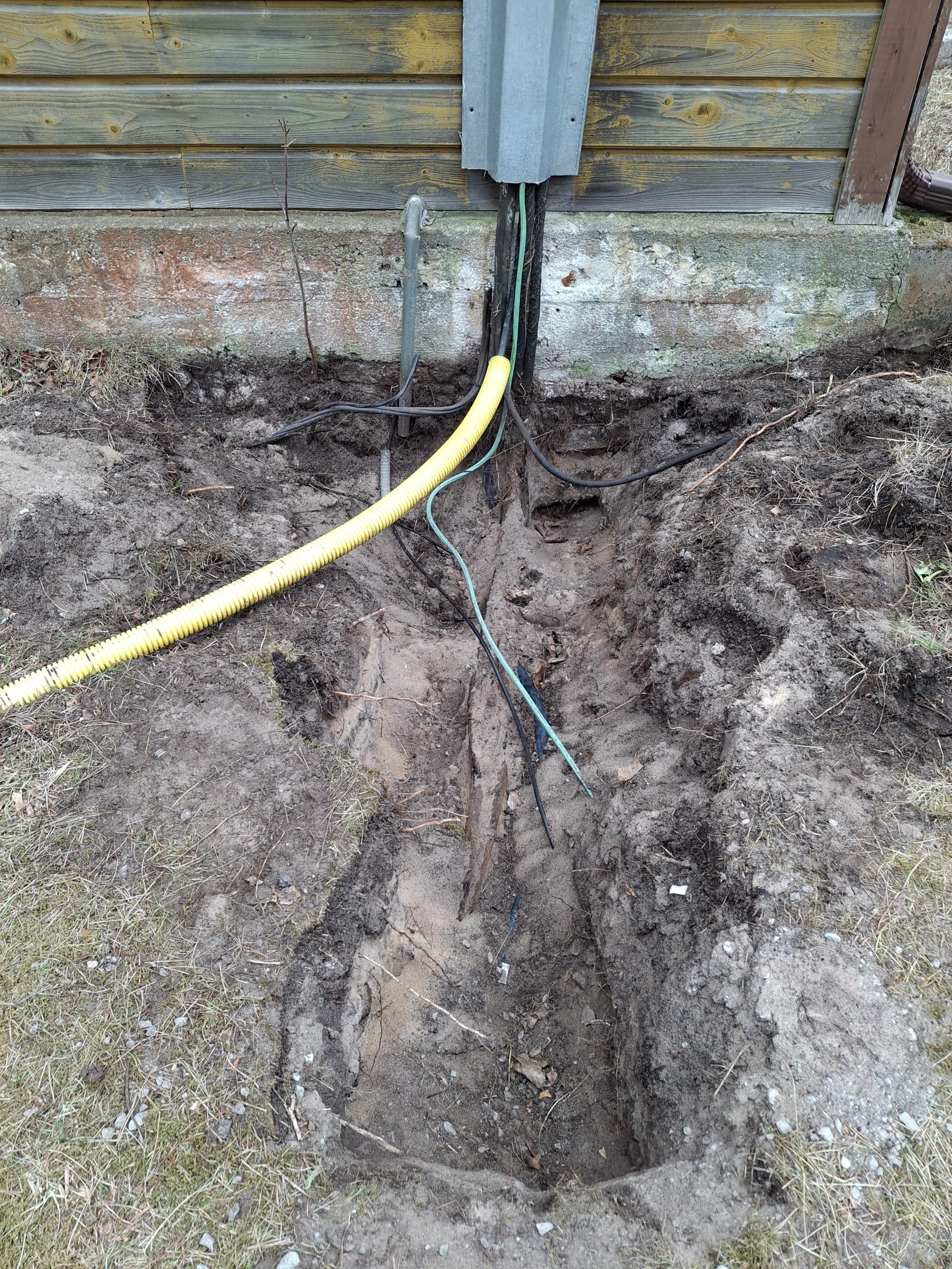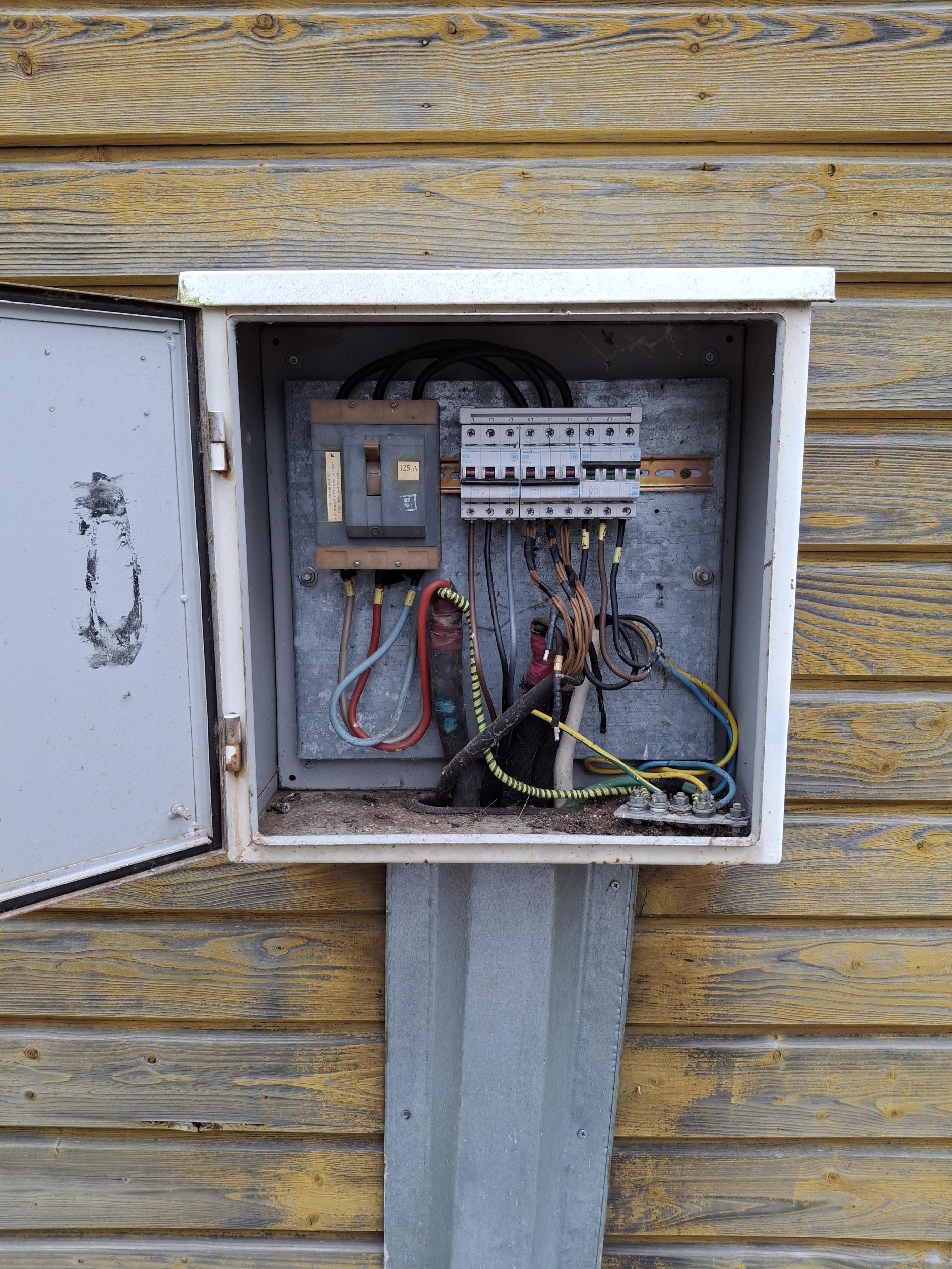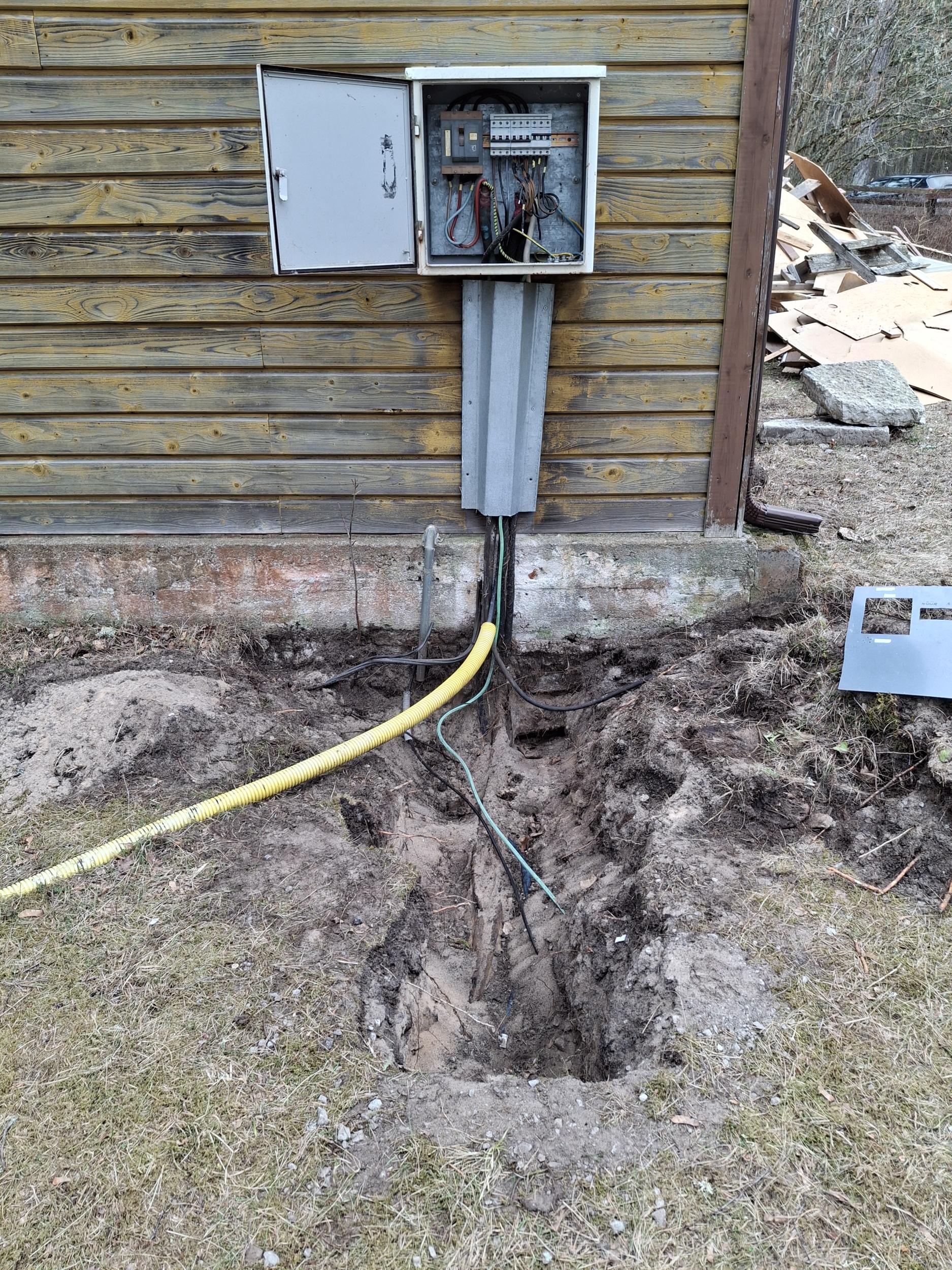Vana jaotuskilp eemaldada seina pealt,et jätkumuhviga siirata kaablid krundi servale ( 8m ) ja sinna paigaldada uus maapealne jaotuskilp.