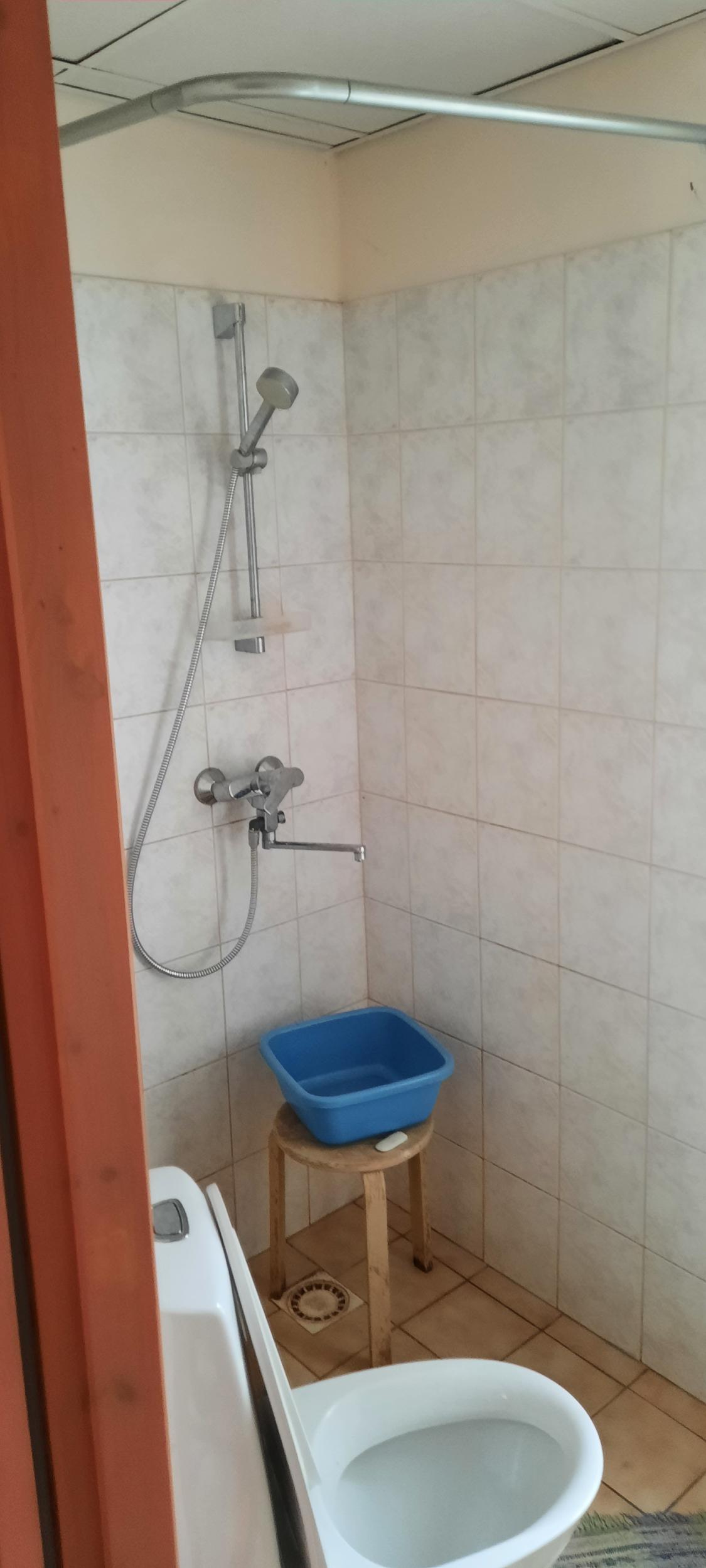 Vannituba kujutab endast WC ja dusinurka vanemas kuid korras majas, praegu 4-5 ruutu. Remont on vajalik seoses maja ühendamisega tsentraalsesse vee- ja kanalisatsioonivõrku. See töö on tellitud. Täiendav tellitav töö sisaldaks vannitoa laiendamist esiku arvel, uut põrandakütet (vesi-õhk?) ja siseviimistlust.