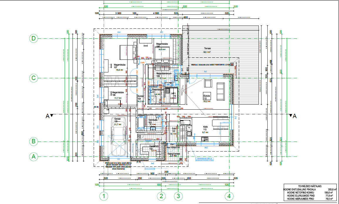 Hind võib muutuda sõltuvalt lõplikest tehnilistest lahendustest ja materjalide valikust ja kvaliteedi klassist +/-15%. Hind tehtud arvestusega et ehitise netopind on 156,8 m2 ja kvaliteedi klass RYL2000 II. Hind sisaldab käibemaksu 22%. Käibemaksu määra muutumisel muutub ka lõpphind. Hind ei sisalda projekteerimist, kui sisaldab projekteerimise juhtimist.