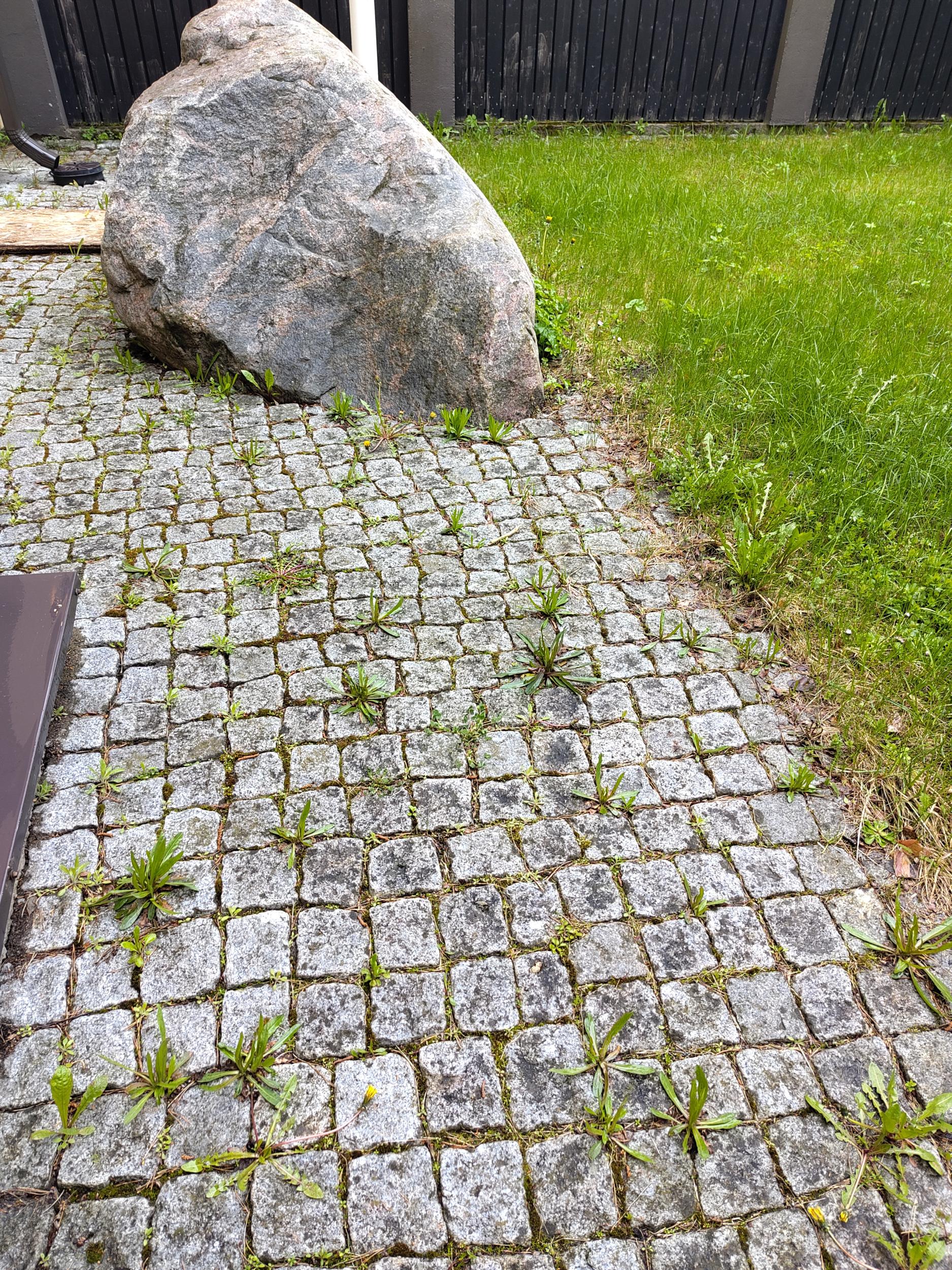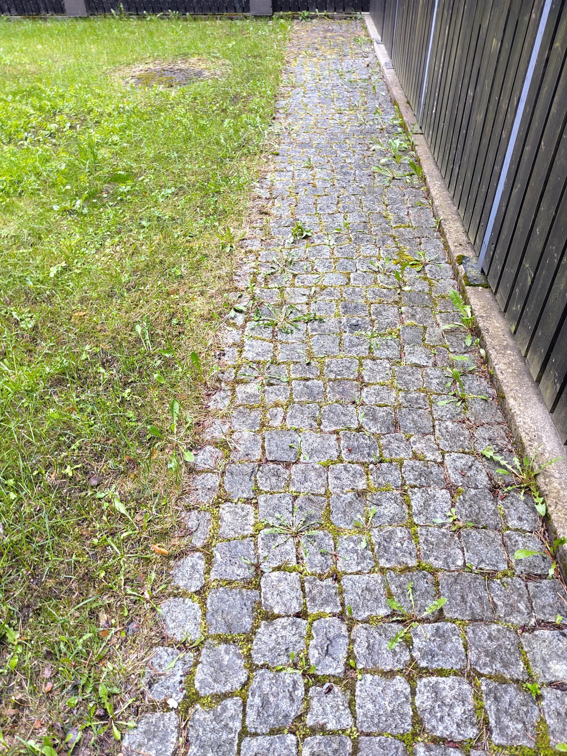 Maja ümber laotud tänavakivide vahelt sambla ja umbrohu eemaldamine ning vajadusel vuukide liivatamine. Ca 200m2.