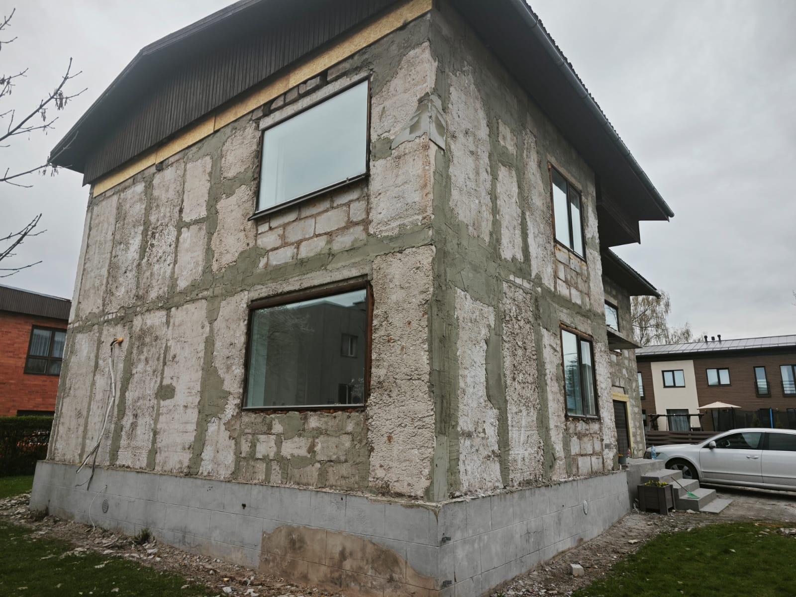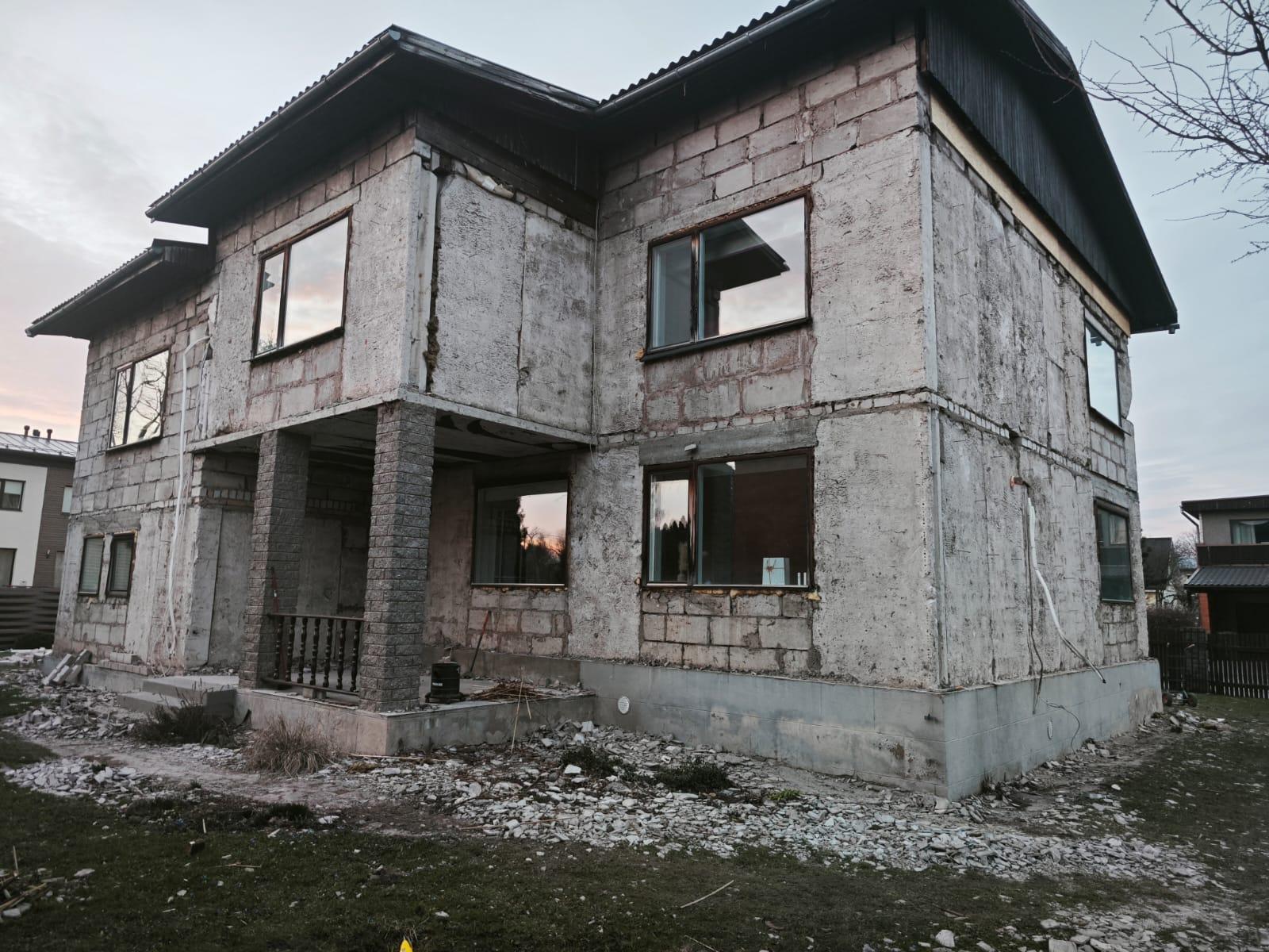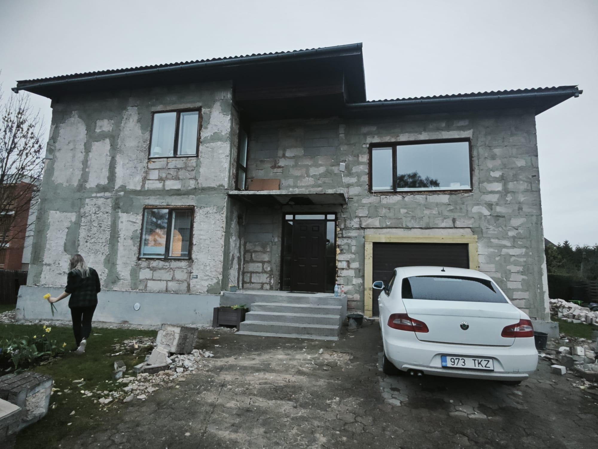 Renoveerimisprojekti koostamine vastavalt uuele või ajakohastatud planeeringule (hoone arhitektuurne lahendus, konstruktsioonid, tehnosüsteemid, energiatõhusus jms). Hetkeline planeering erineb esialgsest projektist. Renoveerimistöid on juba alustatud. Maja on kahekorruseline, täiskeldriga. Plaanis on panna uus katus, fassaad, soojustus, akende ja uste vahetus. Samuti on plaanis muuta elutoa ja köögi vahelist ava. (Suurendada vastavalt insenertehnilistele võimalustele). Sokkel on lahti kaevatud, tehtud vundamendi vuukide parandused ja alustatud hüdroisolatsiooni töödega. Välisfassaad oleks plaanis krohvida 3/5 osas ja ülejäänud 2/5 osas kasutada puitlaudist. Välisfassaadi võiks saada soojustuseks EPS 60 200 mm krohvi alla ning kingspan TP10 120 mm puitlaudise alla. Sokkel EPS perimeter+ 100 mm + tume sokliplaat. Katus tumehall käsivaltsplekk.