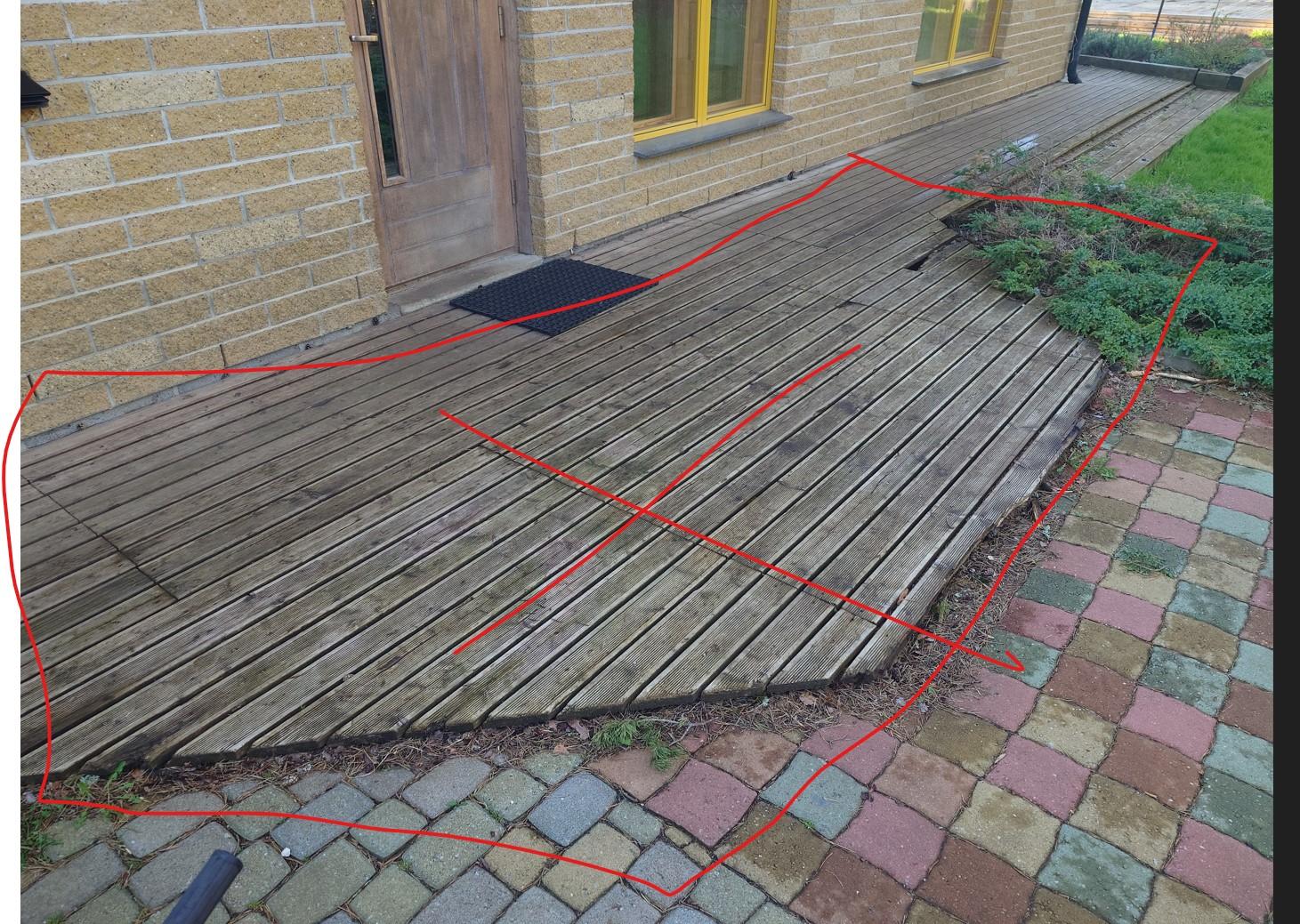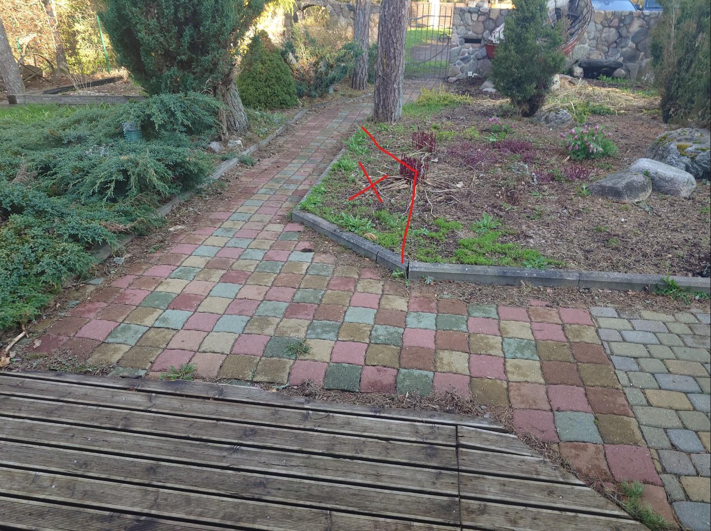 • Ühel piltidel tõmmatud punane rist teraasi peale. Eemaldada terass ja paigaldada elektrikütte matt ja kõnniteekivi.