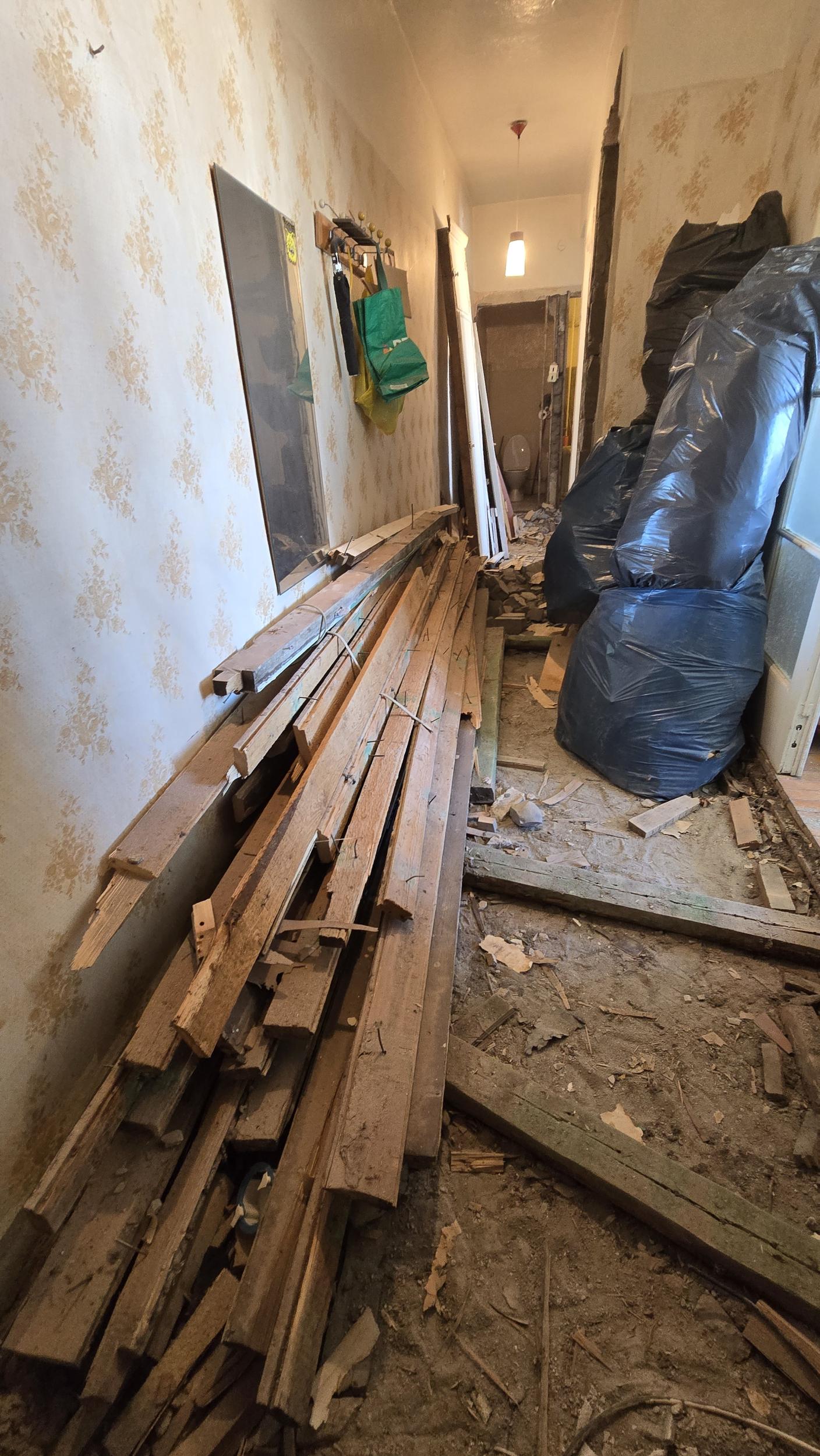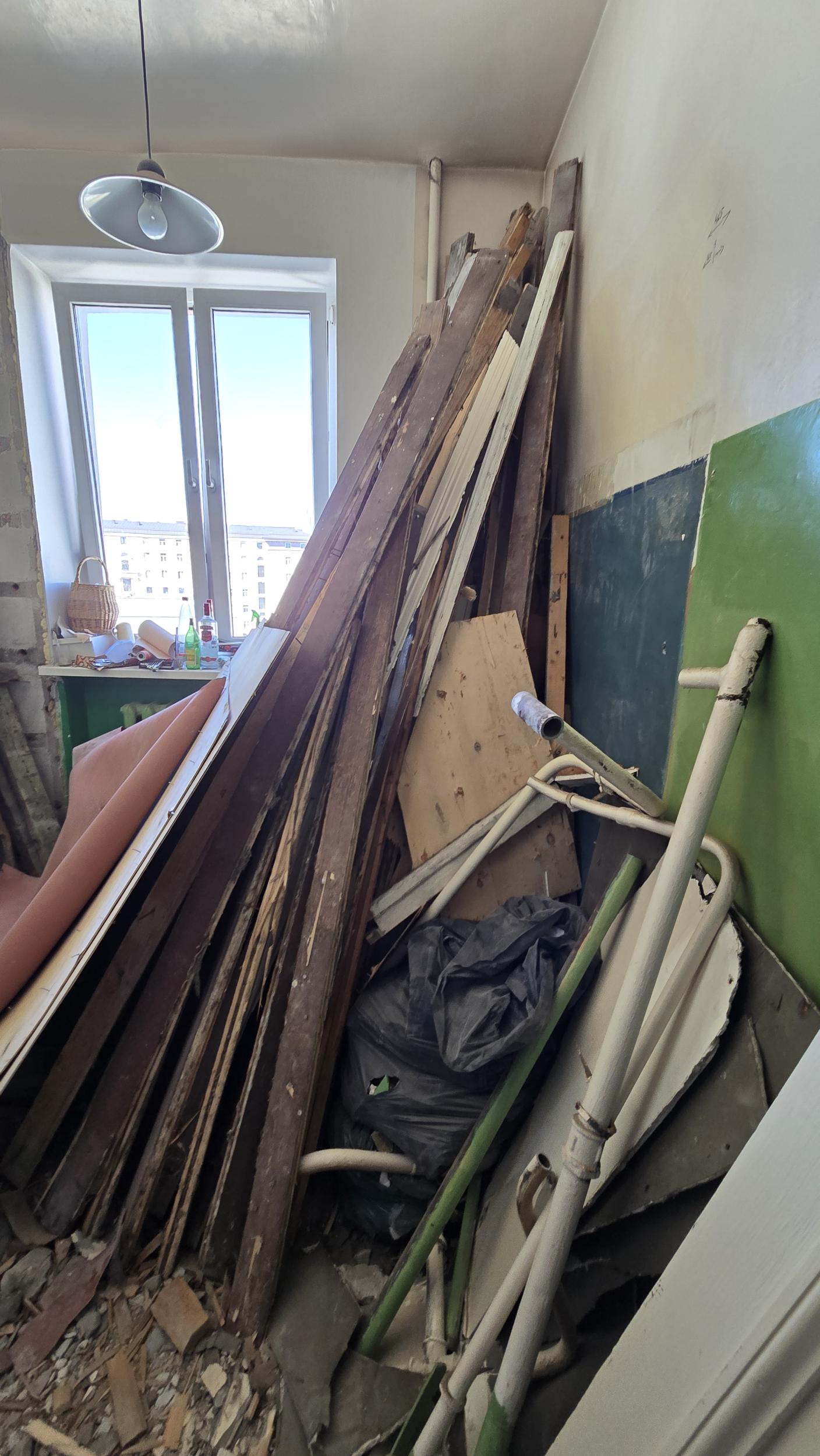 Vaja on korterist ära viia ja utiliseerida ehituspraht. Korter asub Tallinna kesklinnas. 5.korrus, ilma liftita maja. Parkimine sisehoovis.