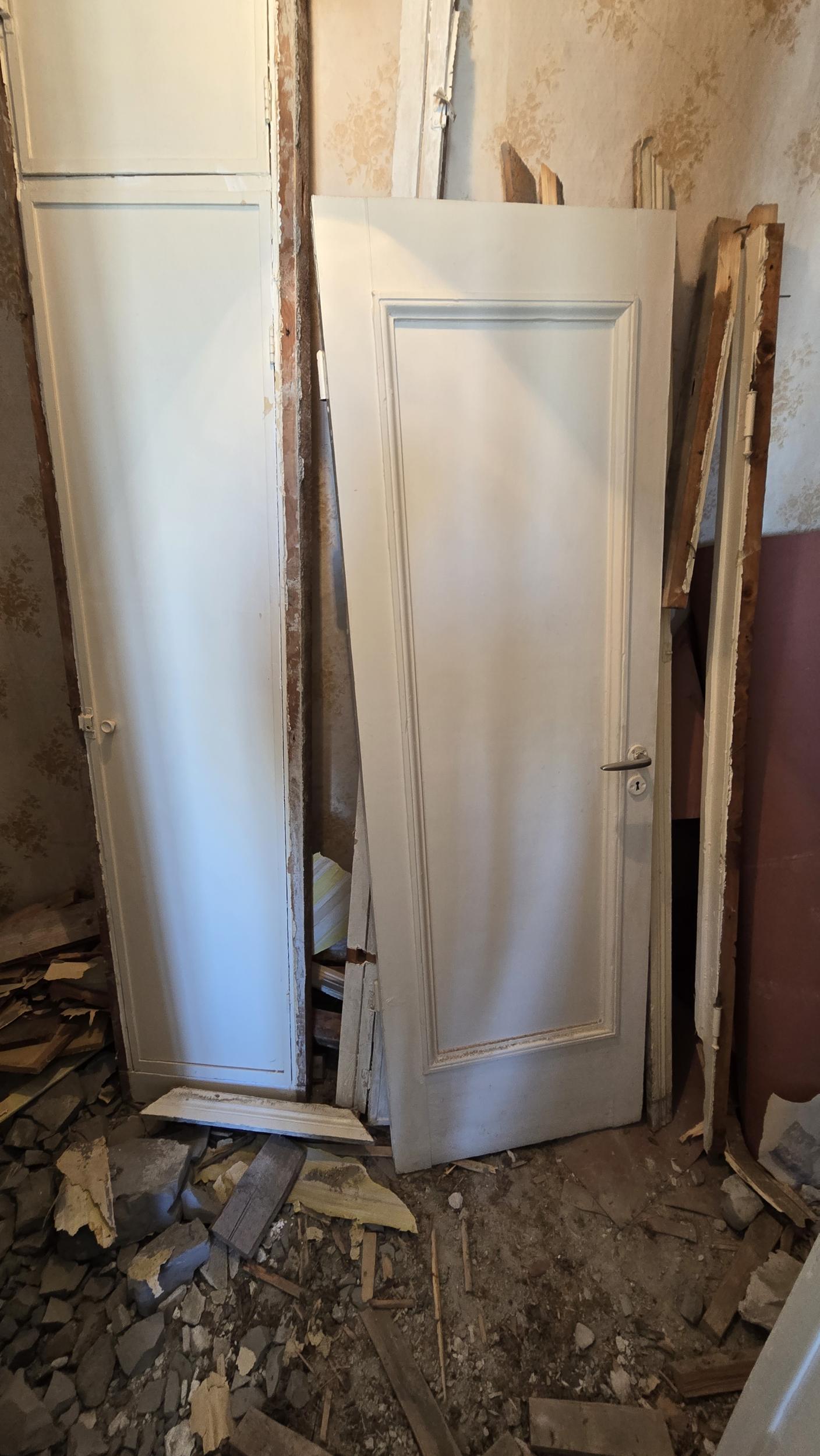 7. Kaks siseukse lehte koos lahti lõhutud raamidega