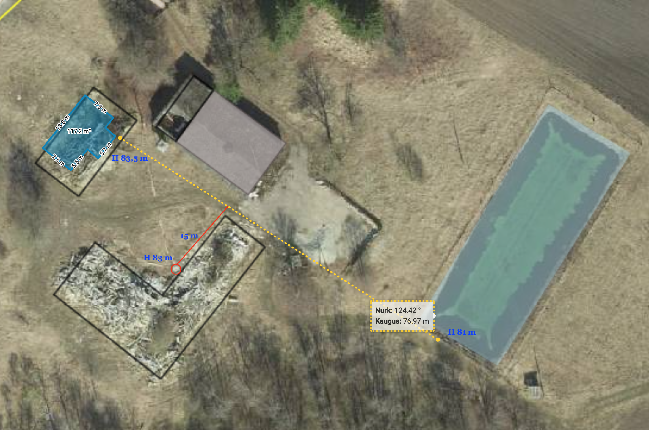 Krundi kuvatõmmisel on elumaja välismõõdud, kaevu asukoht ja torustiku asukohad.