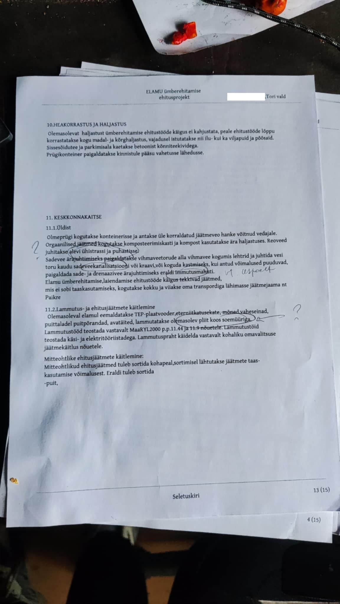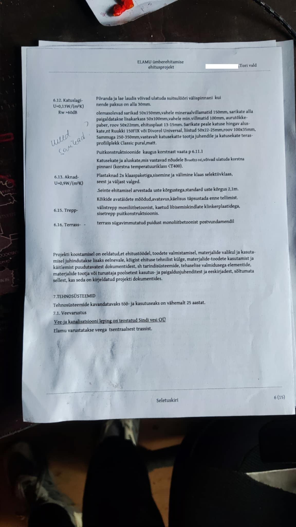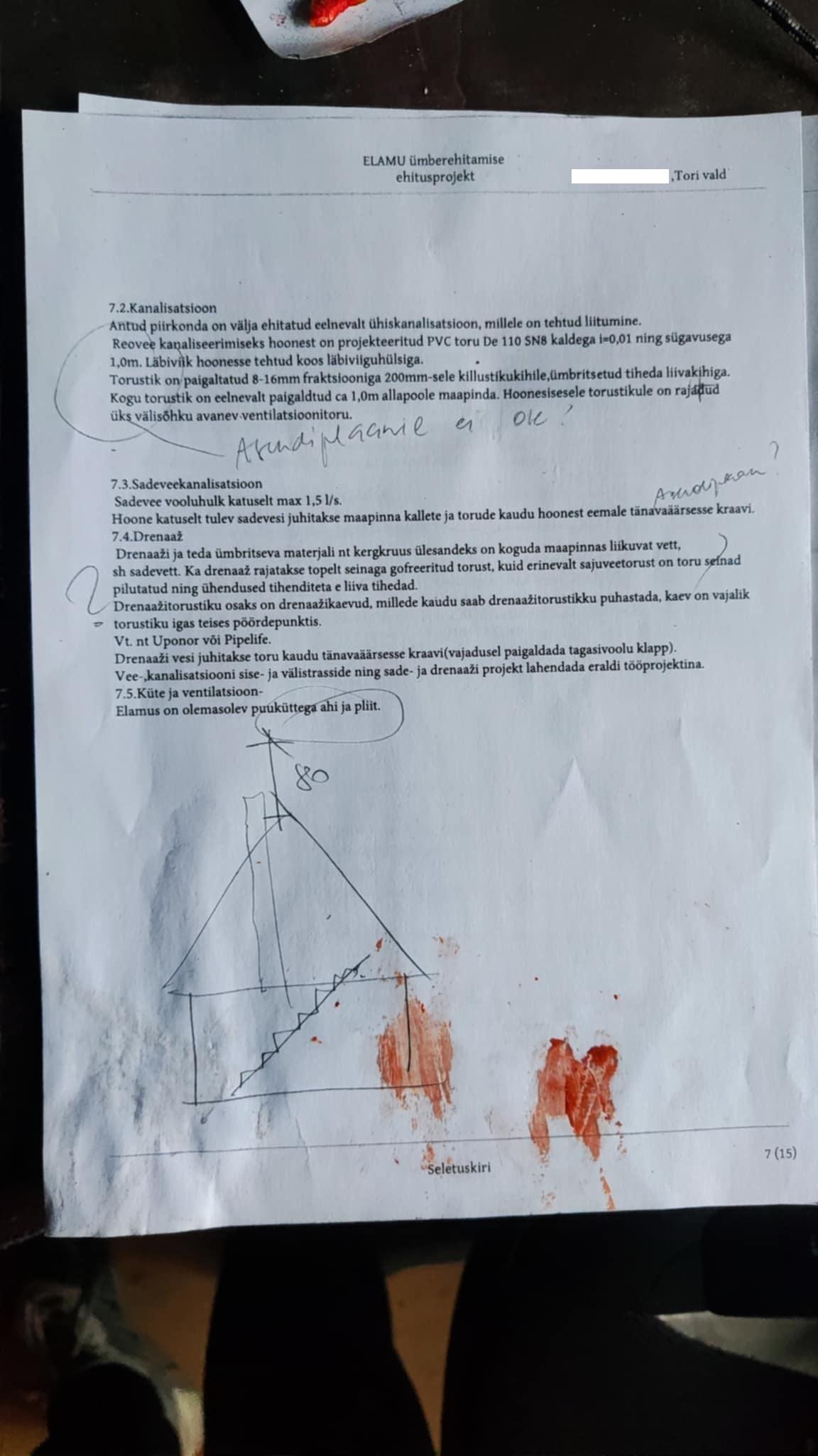 Suure osa joonistest olen ise valmis saanud, aga vallavalitsus lükkas need tagasi. Puudu on näiteks hüdrandi asukoht ja trassid asendiplaanil, samuti on mitmeid muid puudusi.