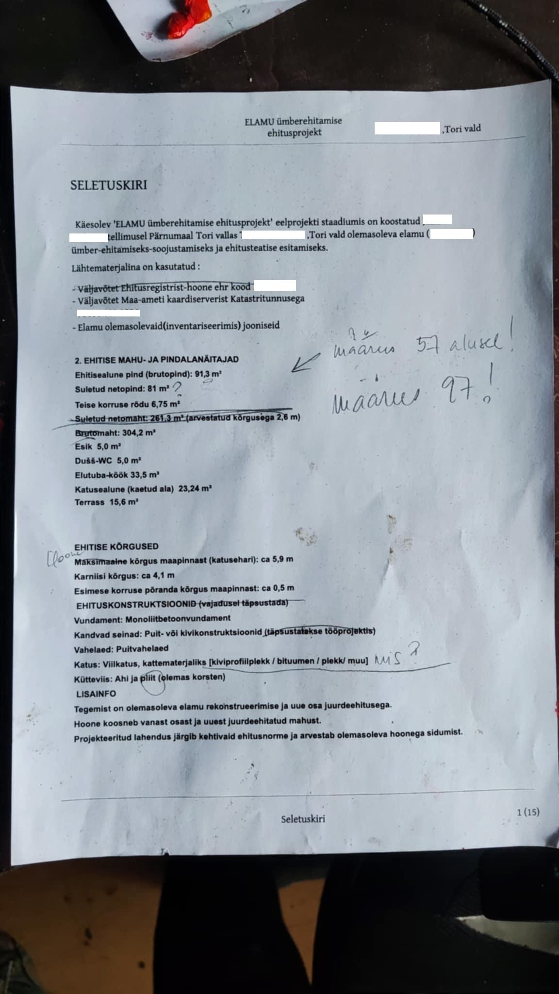P.S. Maja on algselt ehitatud 1920. aastal. Olen vana katuse maha lammutanud ja ehitanud teise korruse peale – nüüd on maja ka pikem. Olen koostanud ka seletuskirja, kuid see vajaks samuti ülevaatamist.