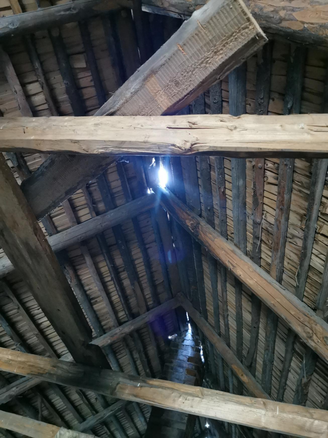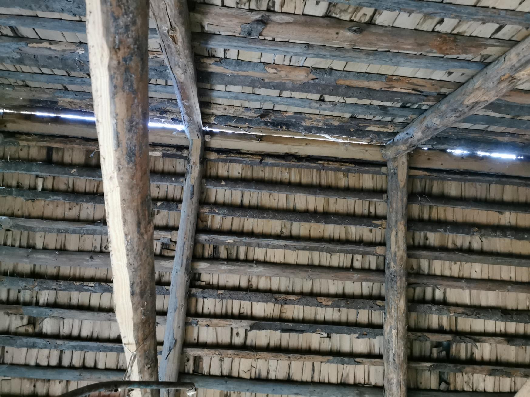 Katta katusehari harjapleki või muu sobiva materjaliga. Peab vastu pidama vähemalt 2-3 aastat. Harja kõrgus maapinnast 7,5 m, pikkus ca 10 m. Kalle 45 kraadi. Katusekate on väga vana ja habras eterniit. Harjast väljuvad kaks korstent ja (pikse?) metallvarras. Olemas on wakaflex kui peaks vaja minema ja Depost ostetud (ilmselt bituumen) katuseharja moodulid 9tk x 1m.