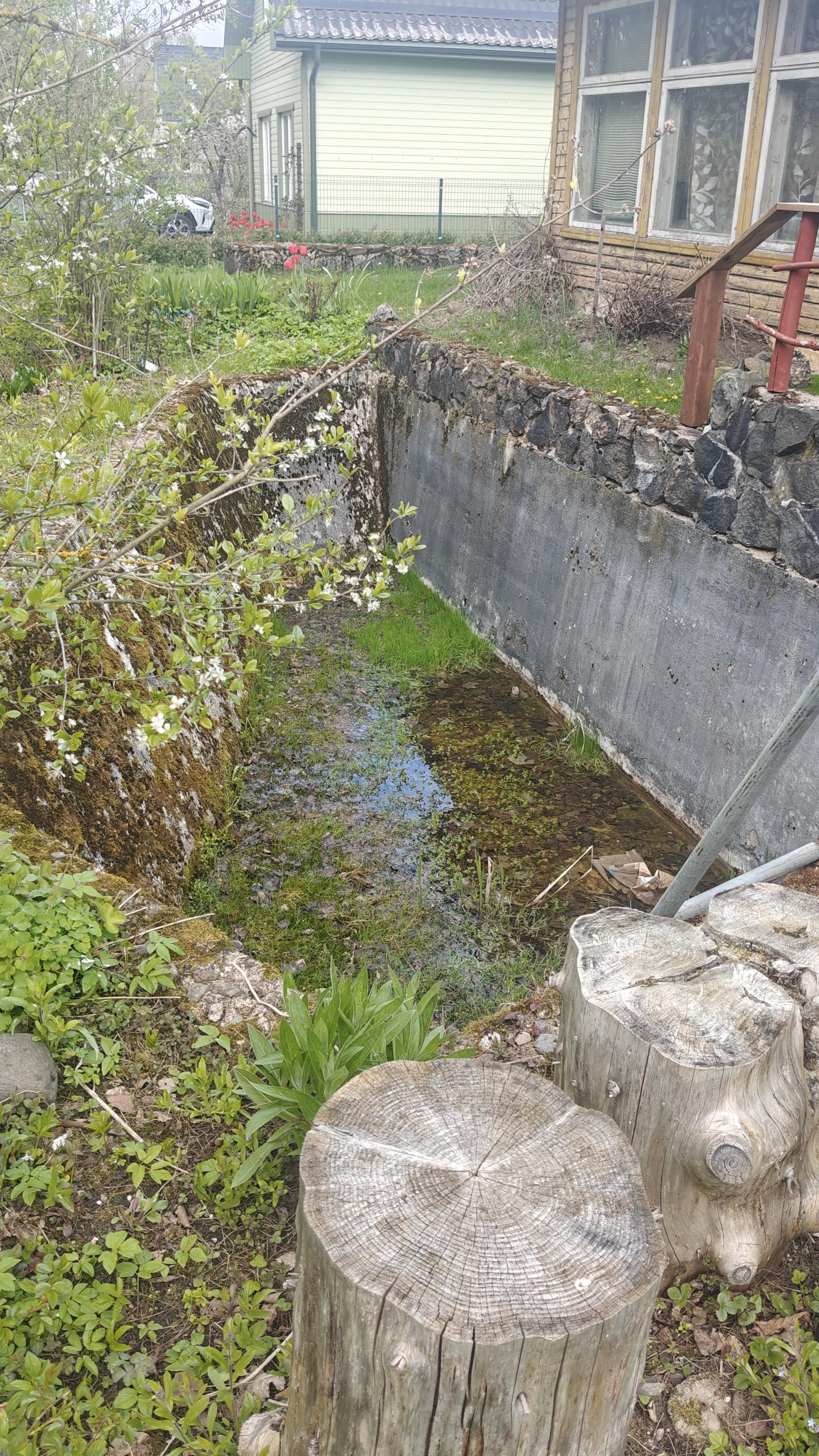 Suvilas vana välibassein, omal ajal betooni valatud. Probleem selles, et betoon ei pea juba mitu aastat vett, seetõttu unarusse jäänud ja samblasse kasvanud. Betoonis nii pragusid kui suuremaid kahjustusi. Oleks vaja pind kuidagi vettpidavaks teha, et saaks jälle vee sisse lasta nagu vanasti. Kuna bassein erikujuline, siis mõõdud maaameti kaardi pealt mõõdetuna umbes 6,5m x 2,5m x 2m (sügavus).