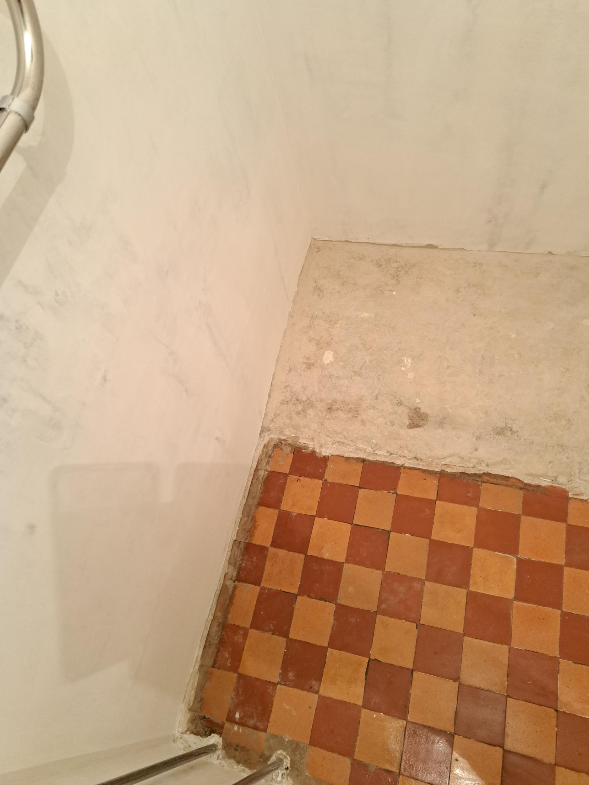 Duširuumi (148 cm x 152 cm) põranda tasandamine (1cm kuni 2 cm) ja plaatimine.