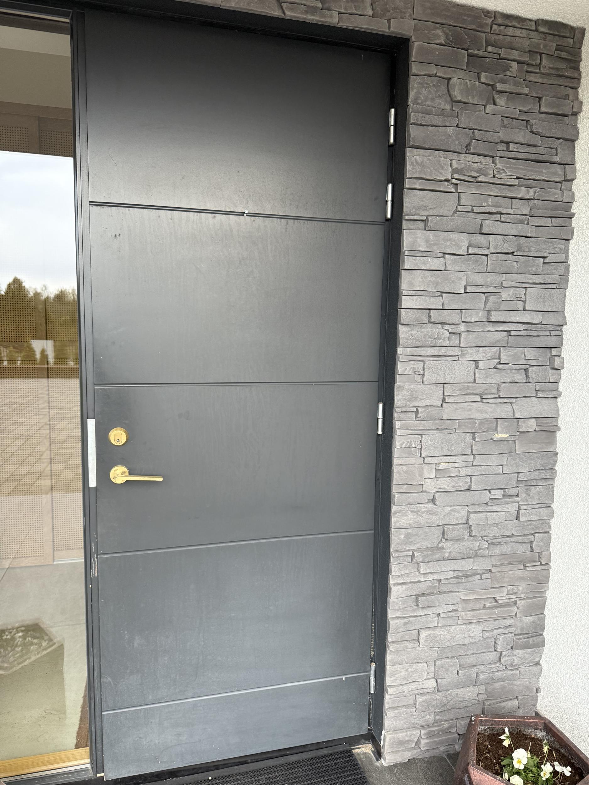 Puidust välisuks vajab värvimist nii väljast kui seest ja ukseleng veidi kohtparandust väljast (vana värv ühe koha pealt lahti). Töö peaks toimuma kohapeal.
