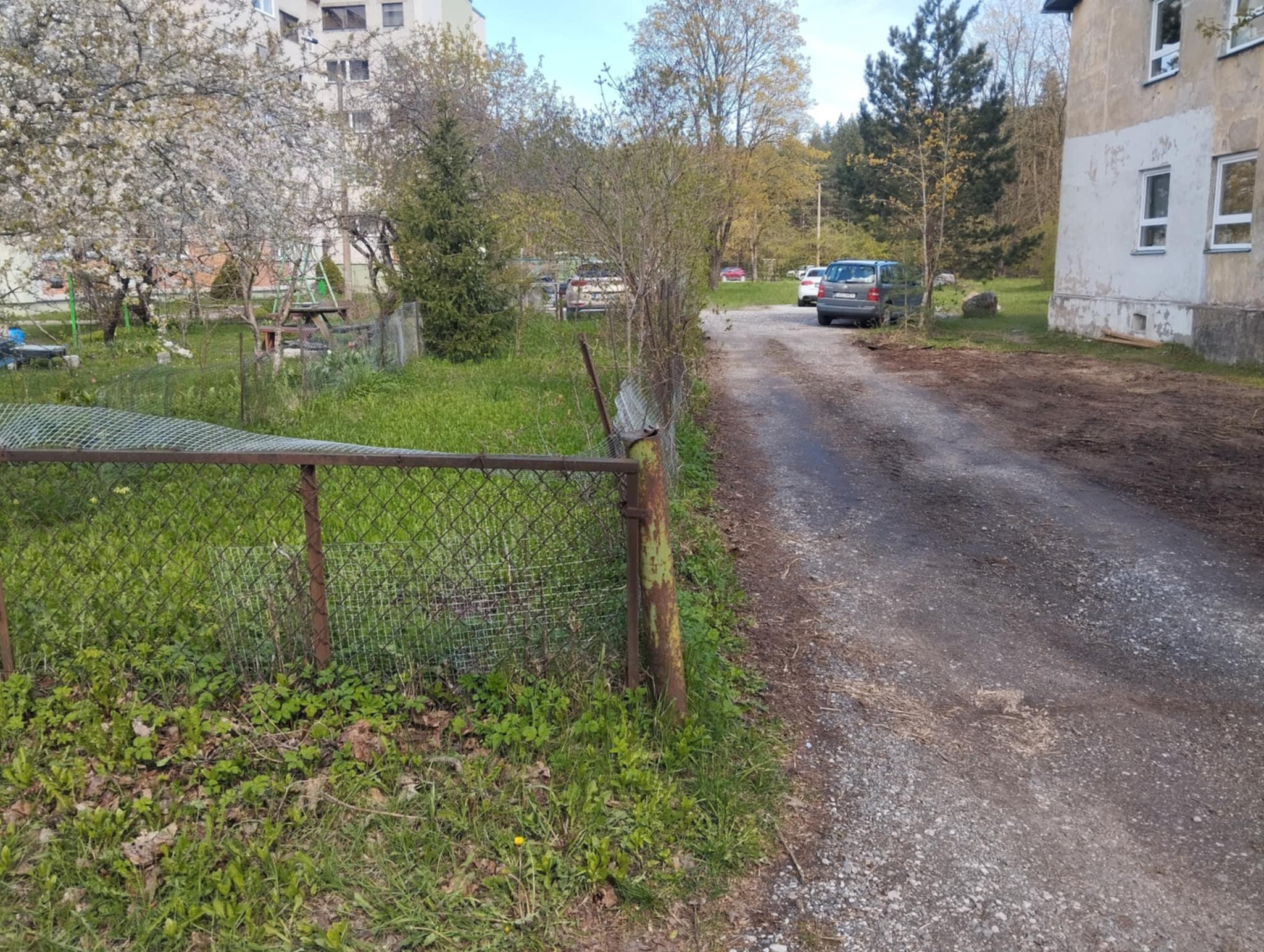 1. Vaja eemaldada vana metallaed, eemaldada mõned puud-põõsad, kaevata ära osa pinnast. Kaevamisest tekkinud pinnase võib planeerida kinnistu territooriumile (vaata pilti, pildil on juba eemaldatud vana sirelihekk ja sinna võib antud pinnase planeerida).