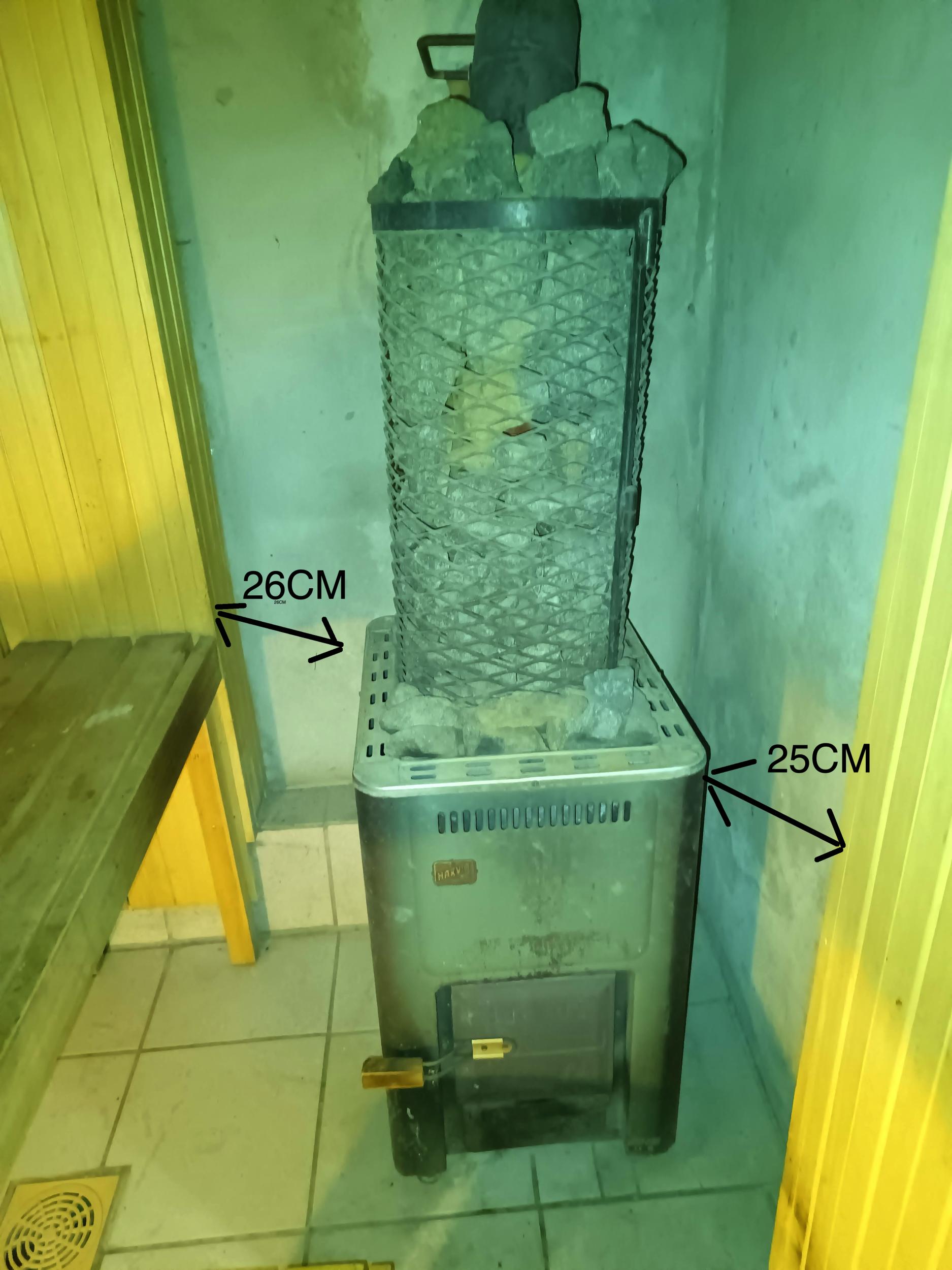 Soovin sauna kerise vahetust. Töö ja materjalid (sh keris) tellija poolt. Uue kerise paigalduse puhul tuleks korstna põlv vahetada või tagada sellise vastu mis lubab puhastamist. Keris peab vastama lubatud eeskirjadele, st tuleohutus kaugus (pildil märgitud kaks nurka 26Cm ja 25CM). Tehtud töö eest allkirjastatud dokumentatsioon mis sobib ehitusregistrisse.