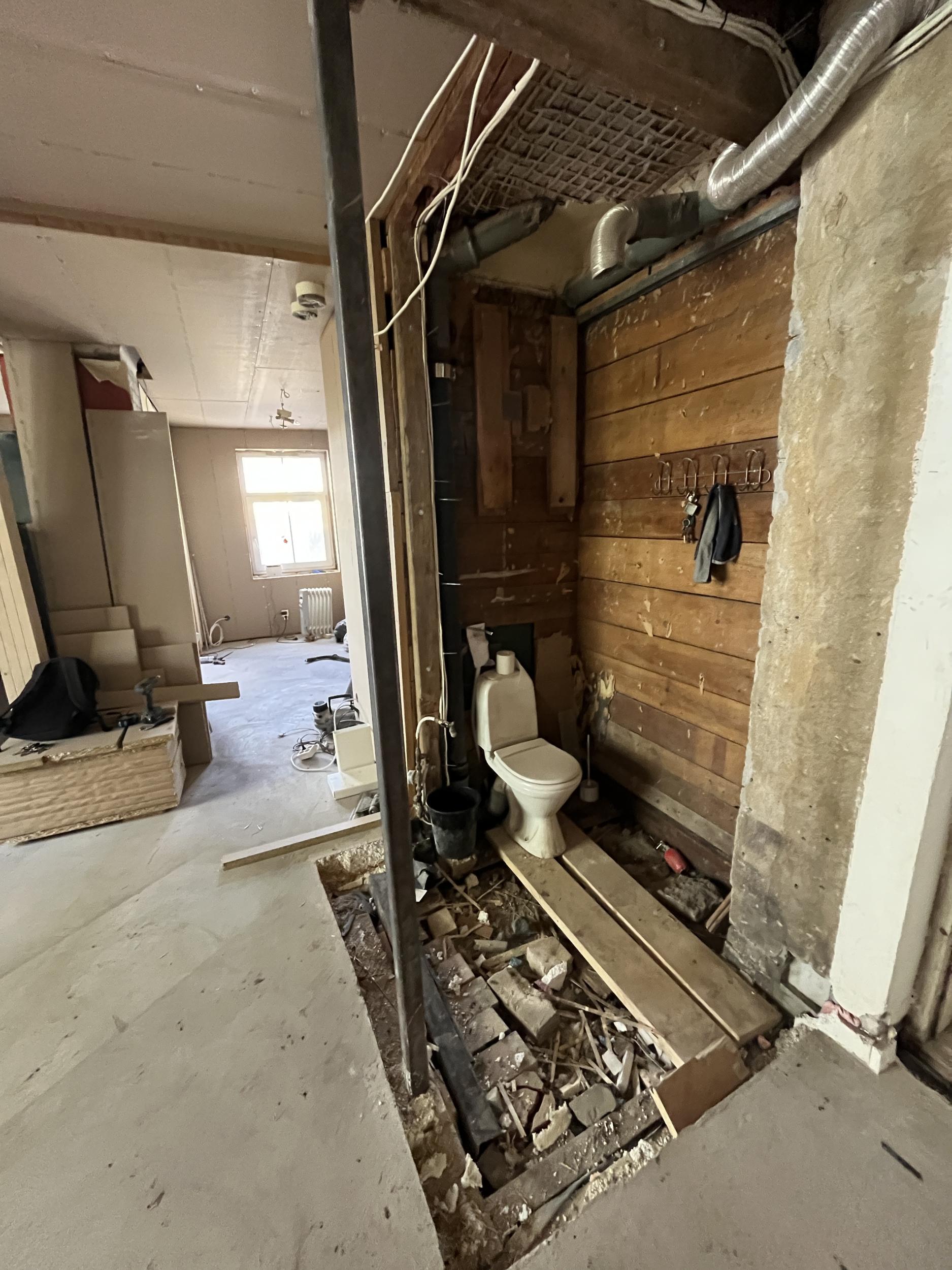 Vannitoa ehitus nullist. Praegu on ainult tühi koht ja kanalisatsiooni toru :)