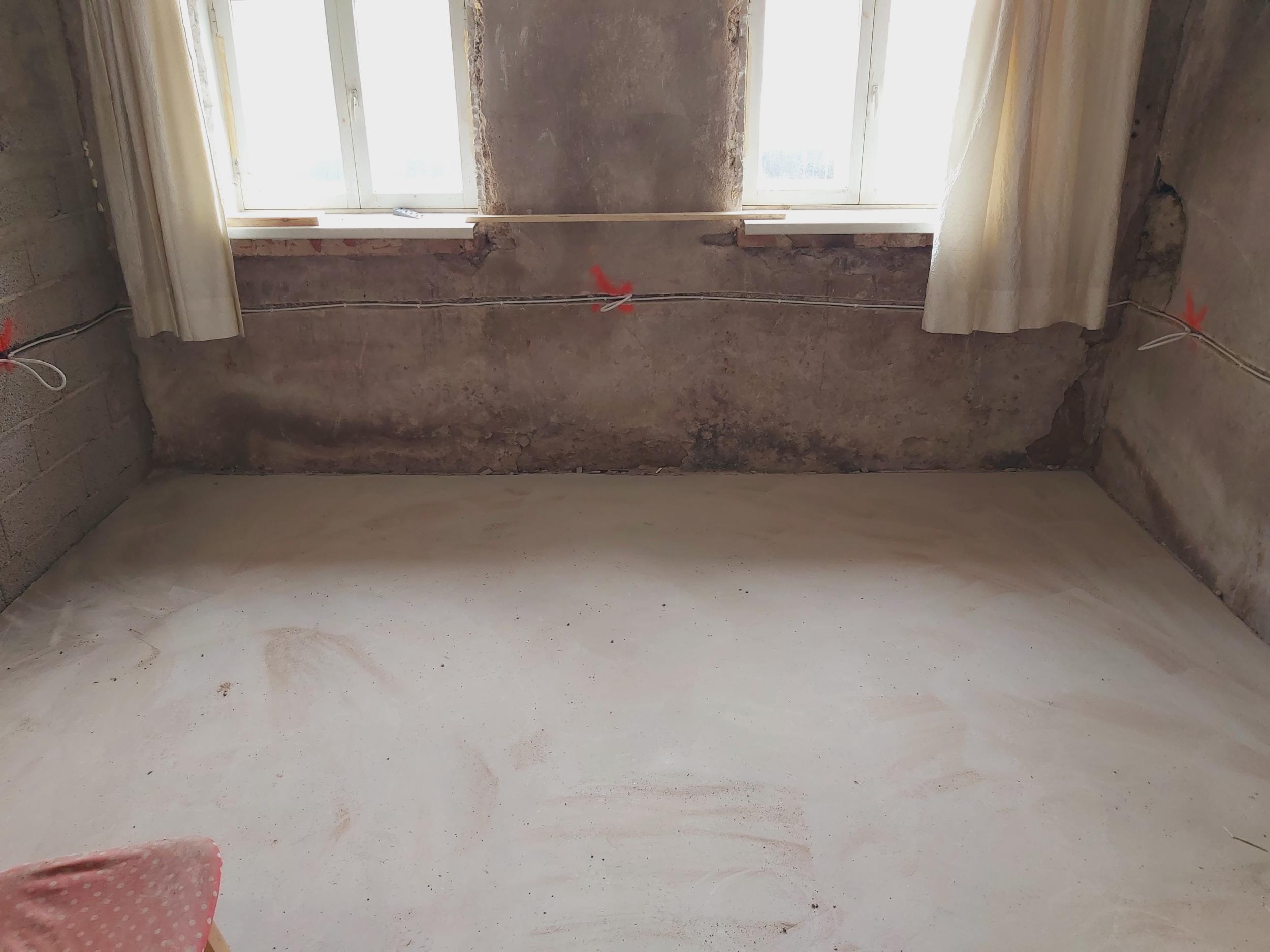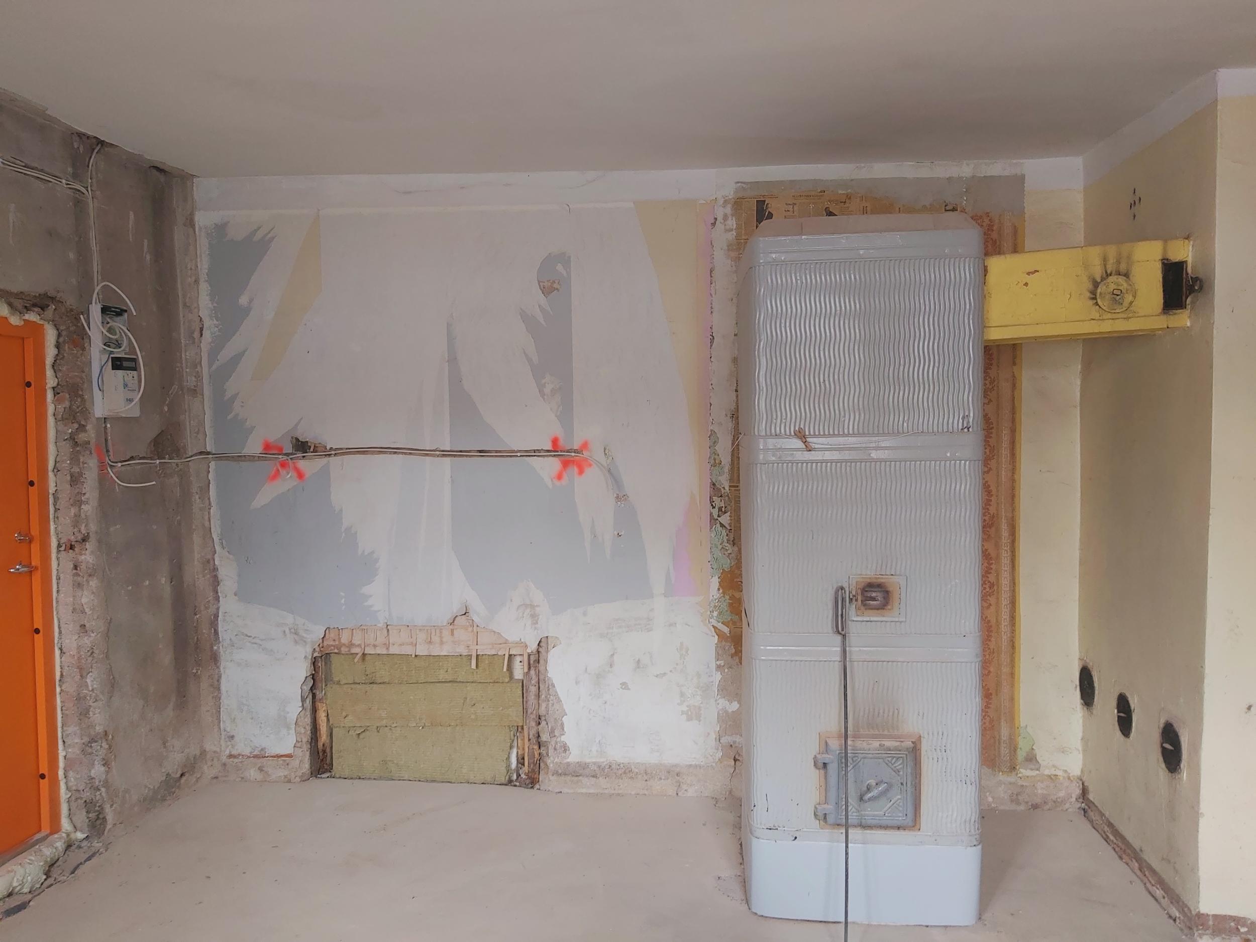 Seinte (+lagi, +paled) krohvimine koos vajalike eeltöödega. Ruum asub soklikorrusel, betoonpõrand on ca 120 cm allpool tänavapinda. Välisseinu on üks - akendega sein. Põrandapind on 16 m2, ruumi kõrgus 254 cm.