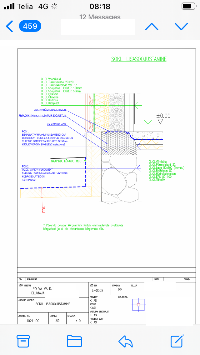 eemaldada ,sokkel lahti kaevata,Pir plaadiga-õhutihedalt katta maakivi osa,vôib uuesti Kivex-i arvestada või krohviga katta.Horisontaal osa pinnase all samuti Pir-iga teha.Soklist kõrgemal palksein kaetud 150 mm villa soojustusega karkassil(seina ûlemine osa 15cm kuskil laudise tagune soklipealne lauatagune osa Puriga täiendavalt soojustada.Tänavakivi 50cm koos äärekiviga hiljem tagasi panna.Perimeeter 35jm.Joonisel näidatud maakivi eemaldamise osa koos vöö valamisega ,ploki paigaldusega mitte arvestada.Maakivi tuleks siledaks saada ja Pir-plaadiga tihedalt soojustada.Maakivi arvestada ennem Pir-ga katmist siledaks krohvida.