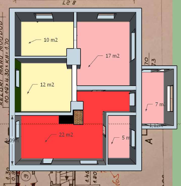 Skeem ruumide ja pindade kohta on lisatud.