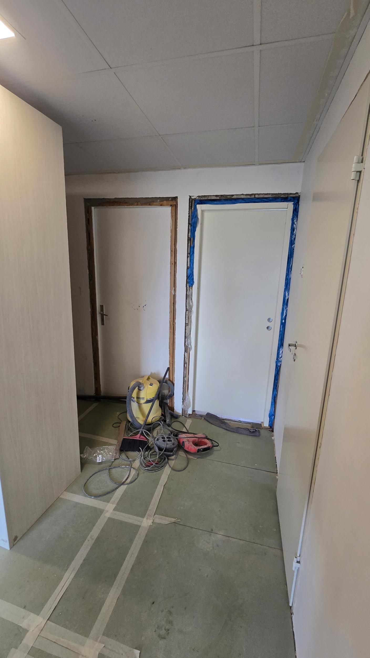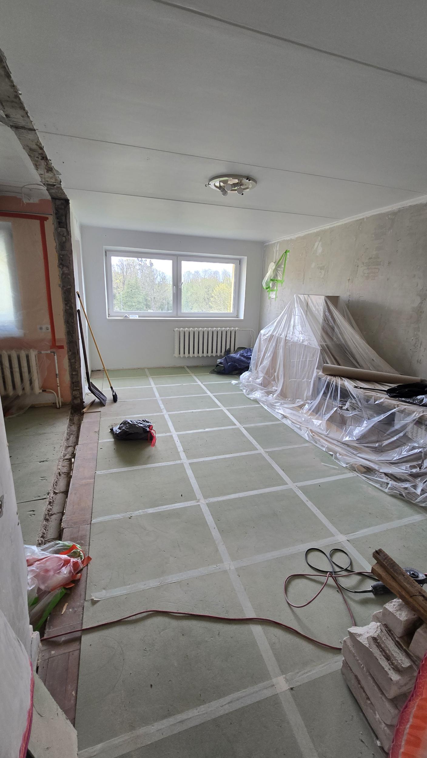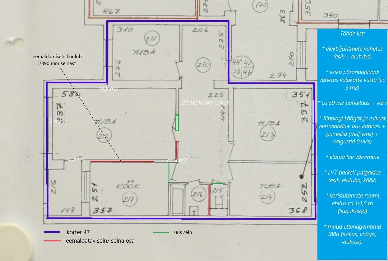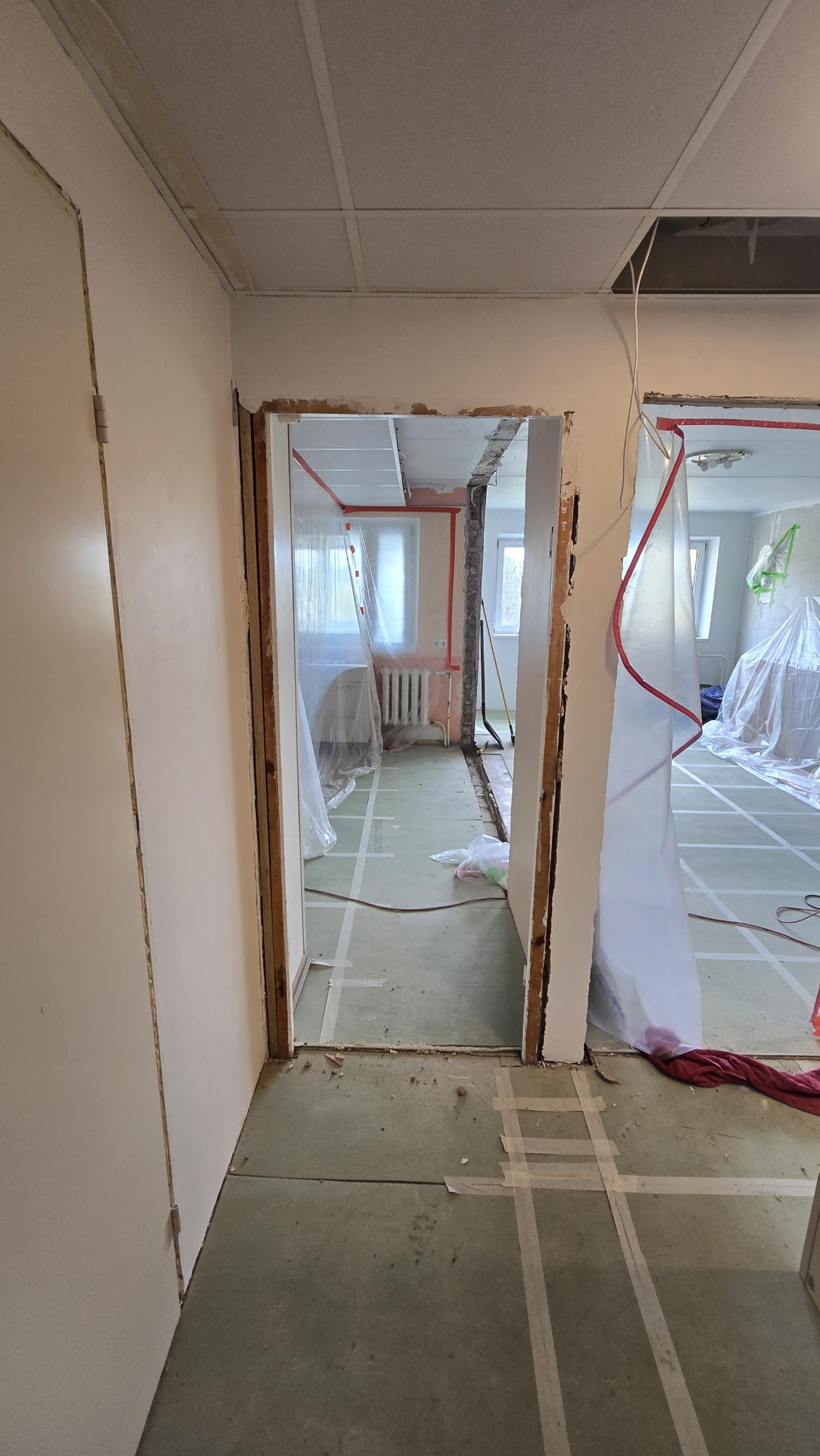Esikus/köögis: lae eemaldamine/uue karkassi ja paneelide paigaldus (plaanis hdf või mdf paneel)