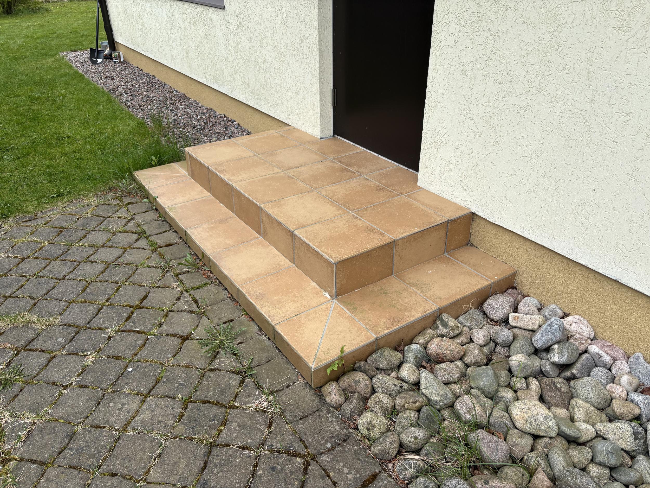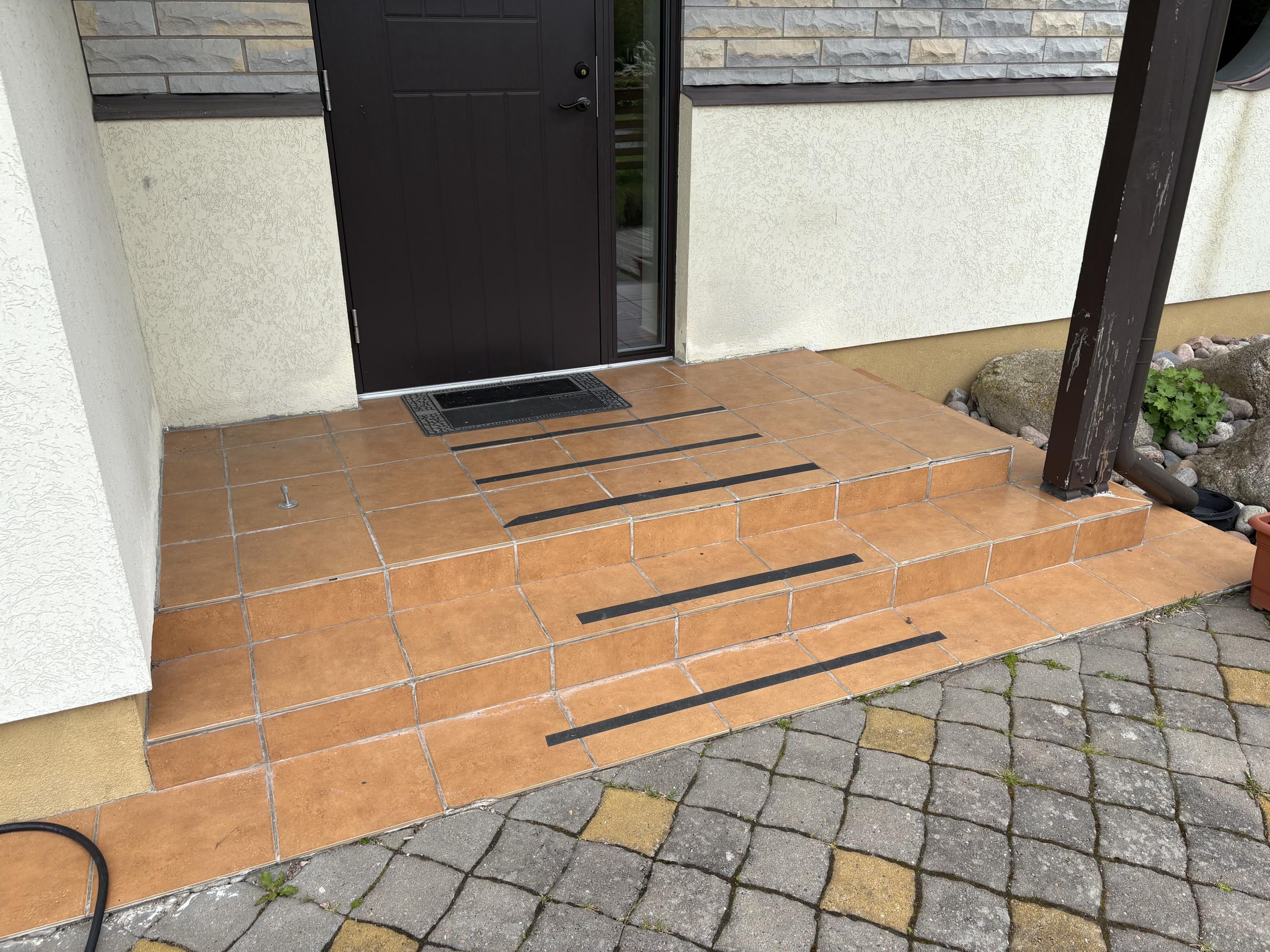 Paluksime eemaldada vanad plaadid ja uuesti plaatida kaks välistreppi ca 5,8 ja 2,6 m2 koos kahekomponentse hüdroisolatsiooniga. Uued plaadid on olemas, kiviplaat 30x30cm. Ehitusprahi utiliseerime ise.