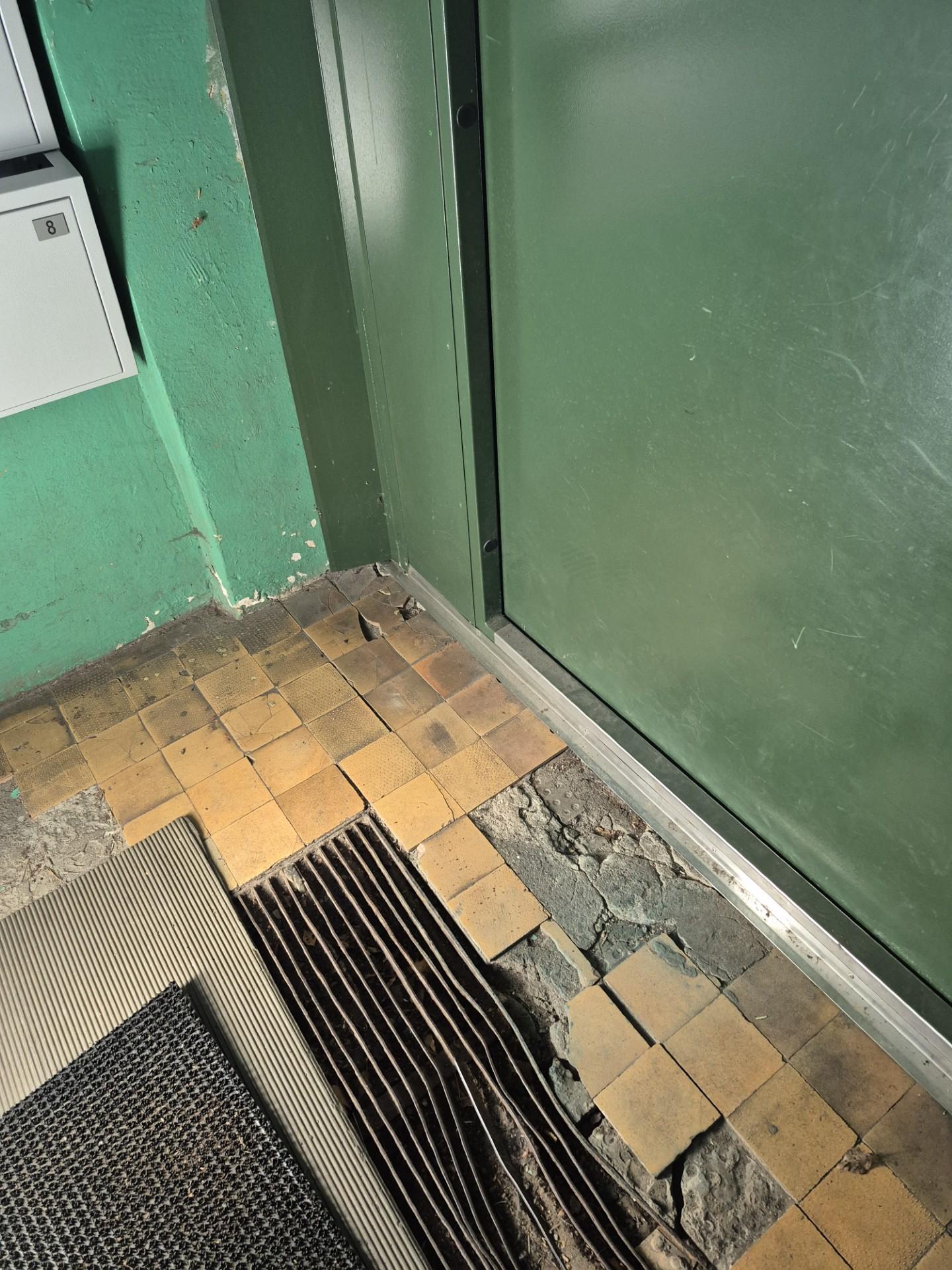 Välja tuleb vahetada põrandad (plaatida), käsipuud, pahteldada ja värvida seinad/lagi, renoveerida trepid.