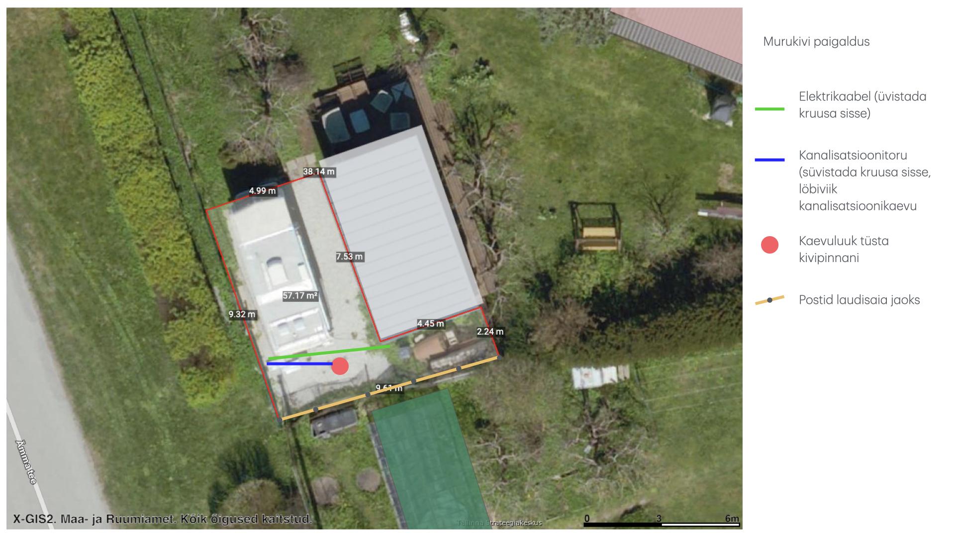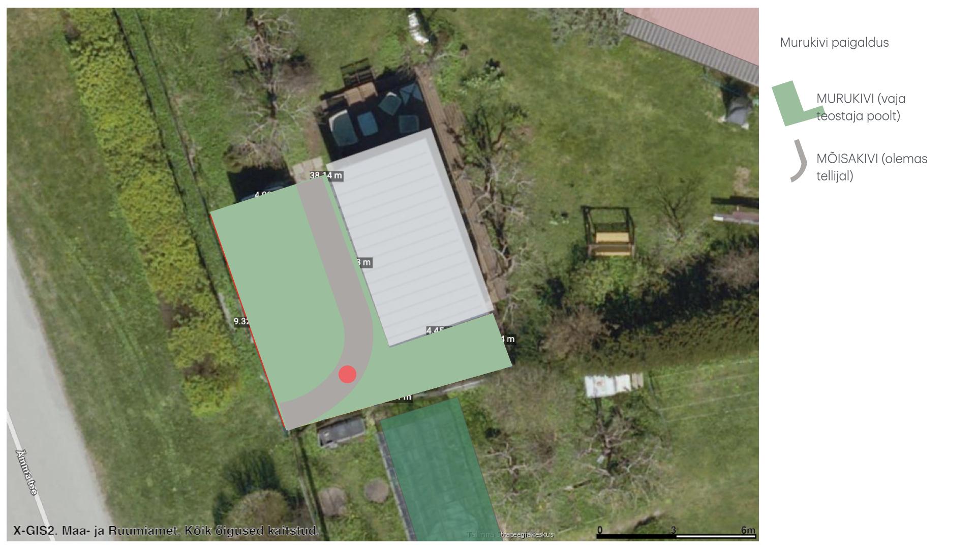 Soovin tellida Murukivi paigalduse olemasolevale kruusapadjale (siiski on vaja kas liiva vi tuha patja veel alla. Kogu pind on u 60 ruutmeetrit, osad küljed on vaja piirata ka äärekiviga. Ühte külge oleks vaja paigaldada ka aiapostid laudisaia jaoks (u 10 m pikkuselt, 2 m sammuga).Üks kaevuluuk tuleb tõsta kivipinnaga tasa (hetkel kruusapadjaga tasa). Murukivi tuleb mullaga täita ja osaliselt ka tekitada murupinnaga pealesõidu osa.