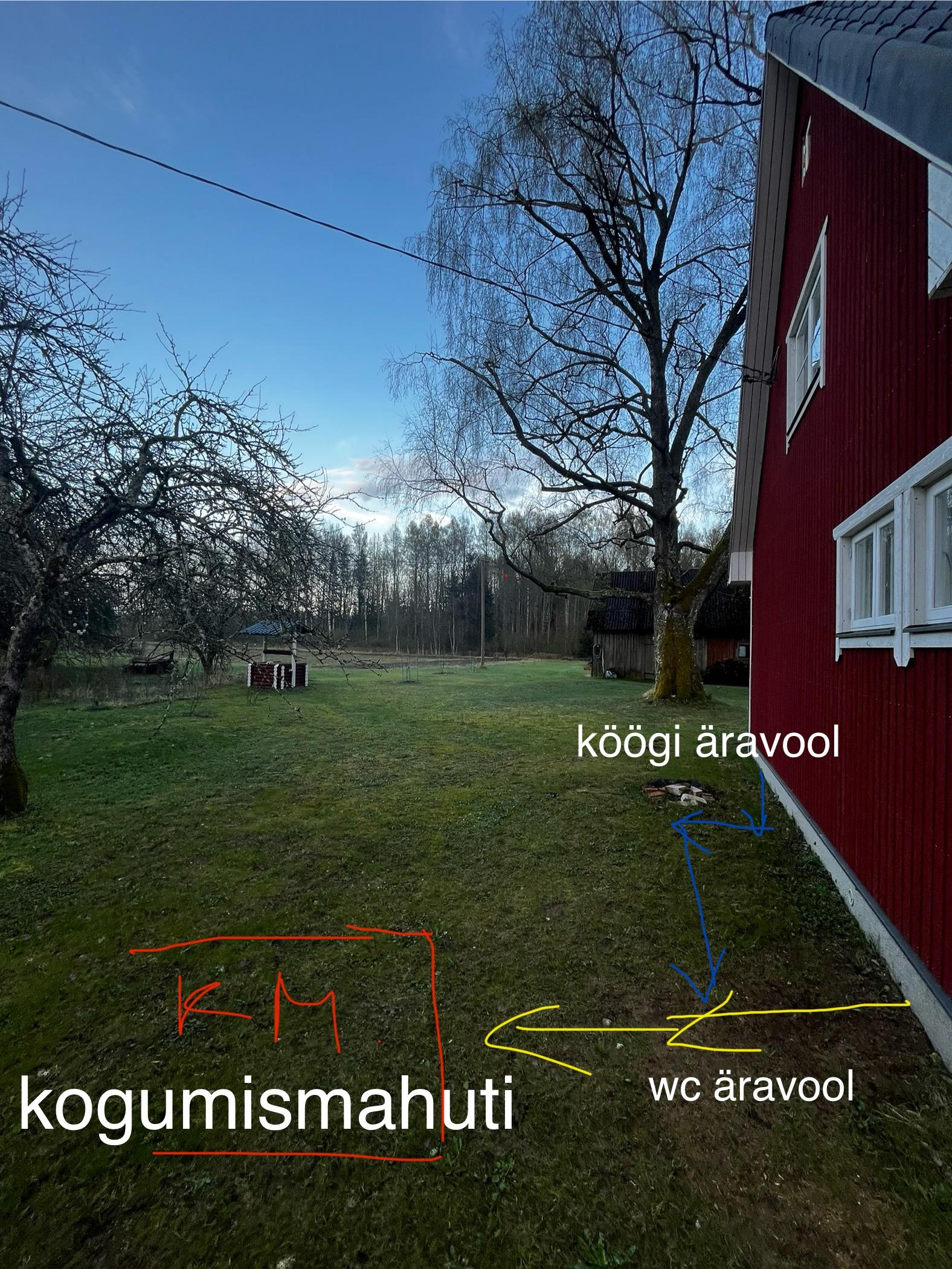 köögist väljavoolutoru jookseb vundamendist vanasse kogumismahutisse; seal oleks vaja äravoolutoru uuendada ja ühendada uude kogumismahutisse.