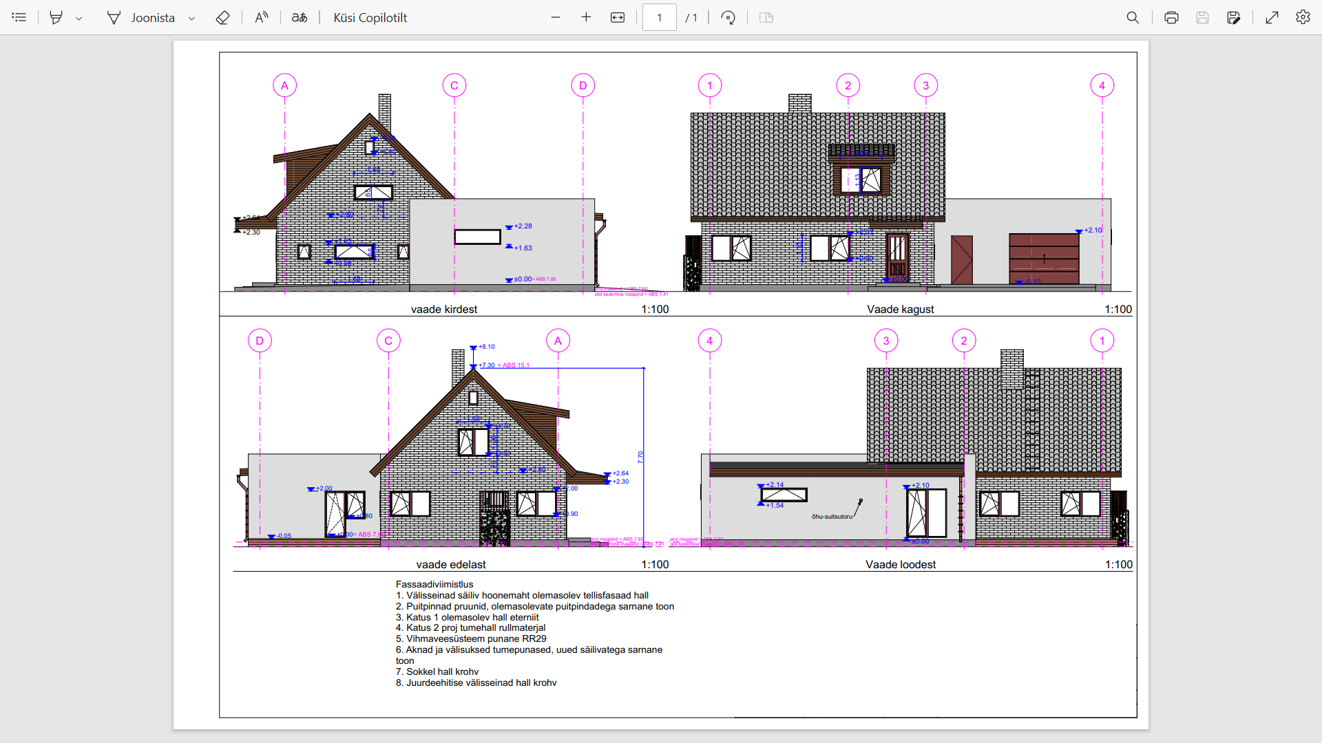 Olemas on arhitektuurne eelprojekt, konstruktiivne põhiprojekt, VK välisosa põhiprojekt, VK siseosa põhiprojekt ning kütte põhiprojekt. Hanke juurde on lisatud anonümiseeritud väljalõige asendiplaanist ning konstruktiivse põhiprojekti ja arhitektuurse eelprojekti seletuskirjad. Aluseks palun võtta konstruktiivne põhiprojekt.