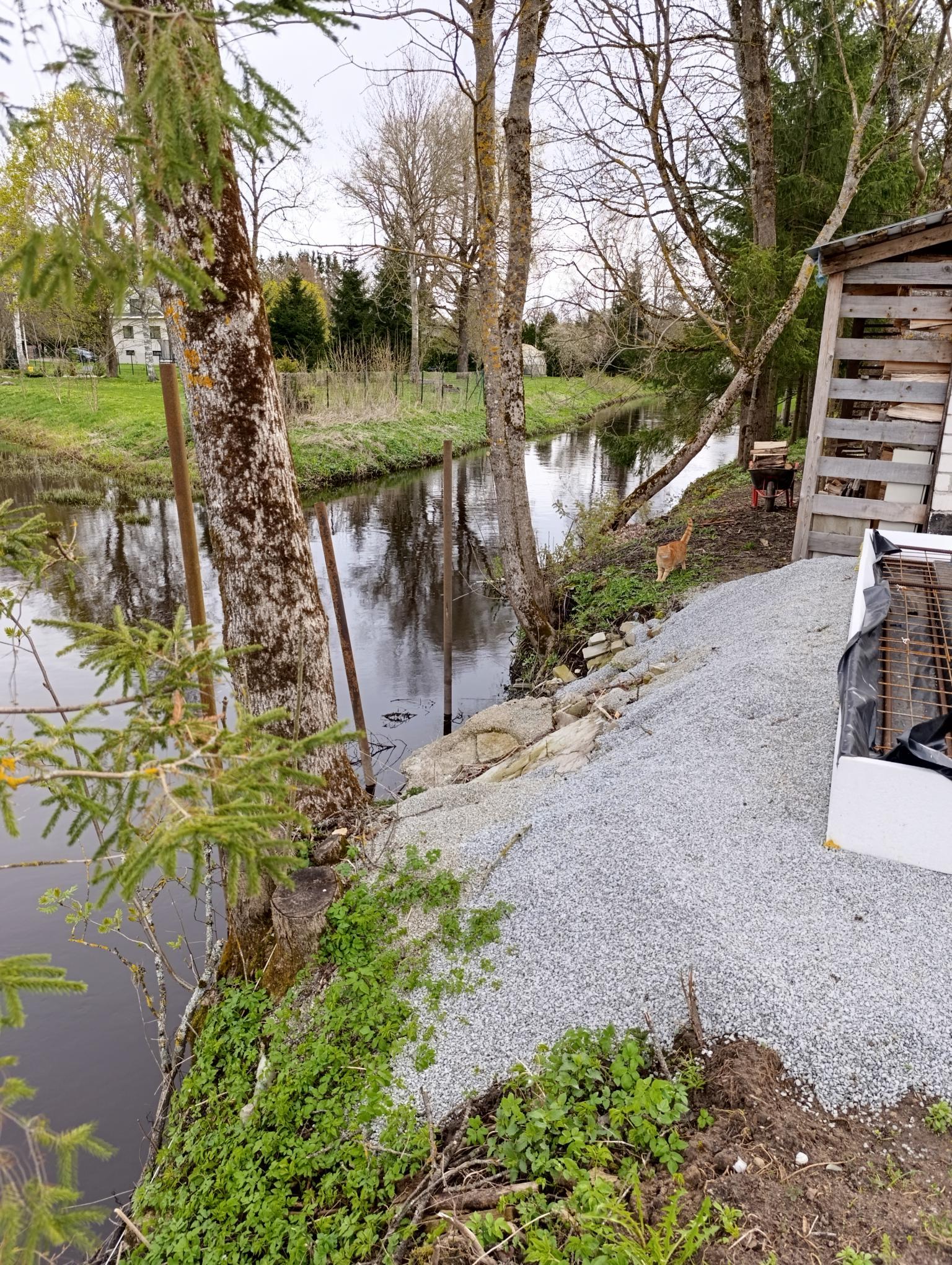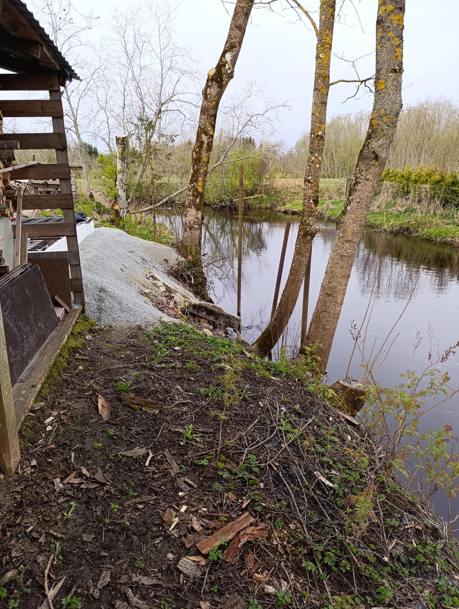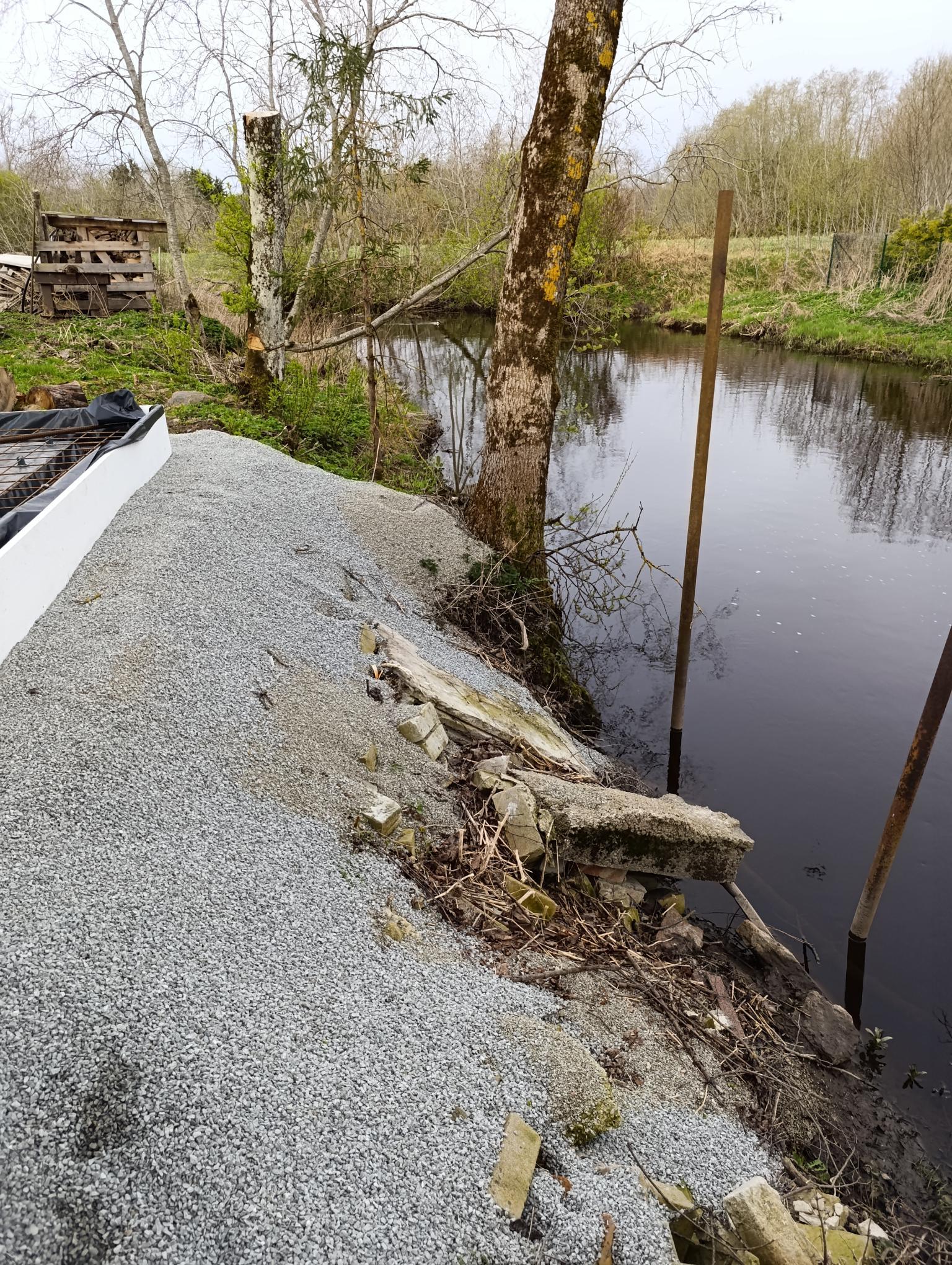 Jõe kalda kindlustamine. Mõõdud ca 20m pikk ja 2m kõrge.