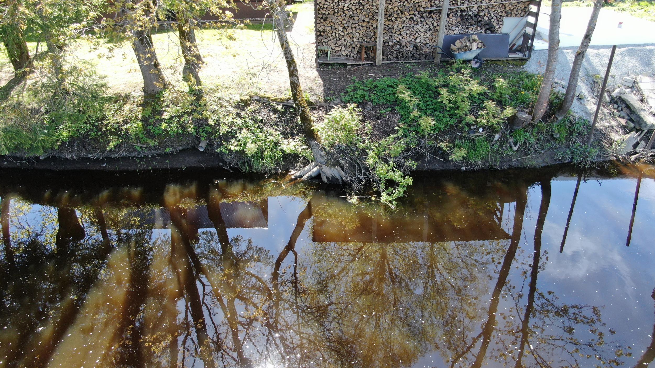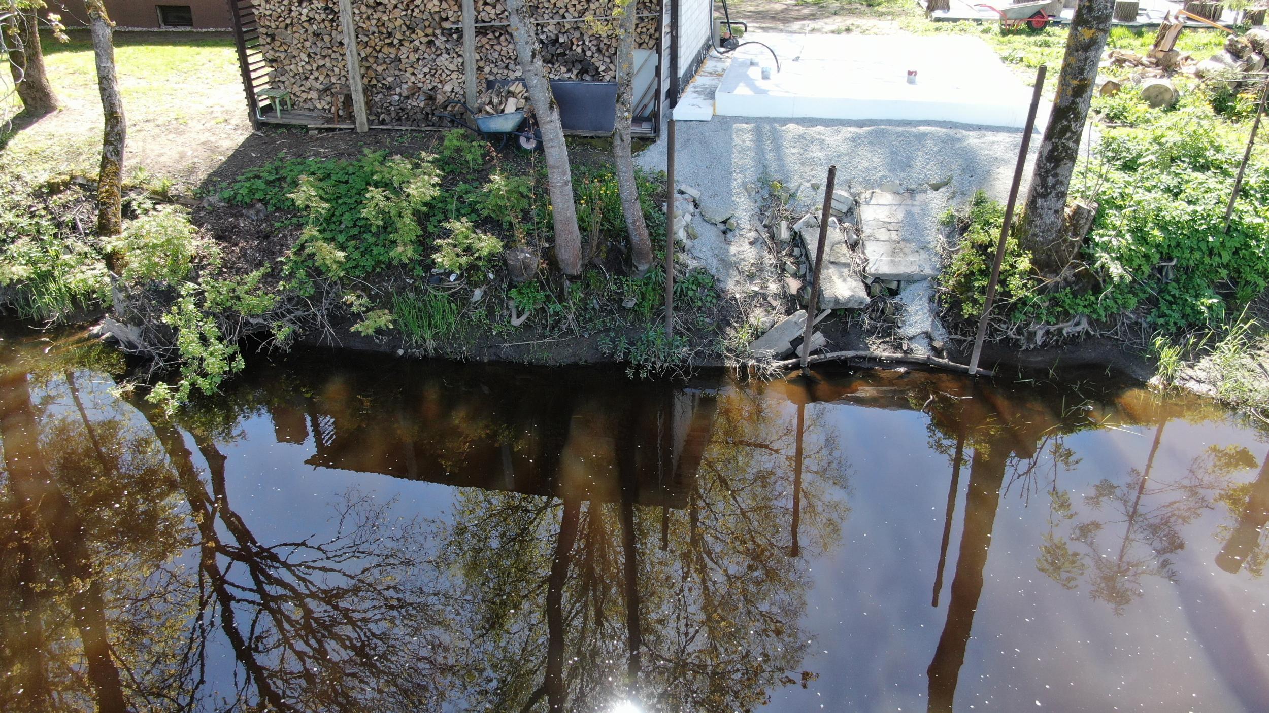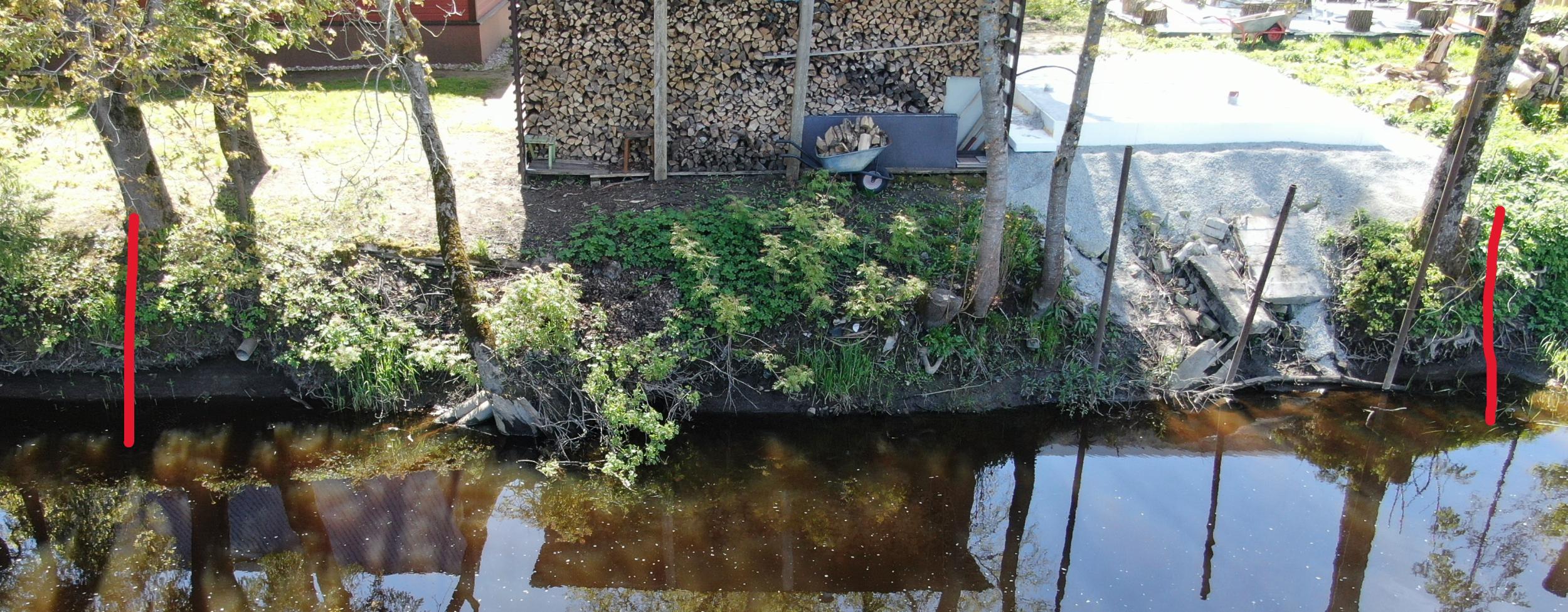 Jõe kalda kindlustamine. Mõõdud ca 20m pikk ja 2m kõrge.