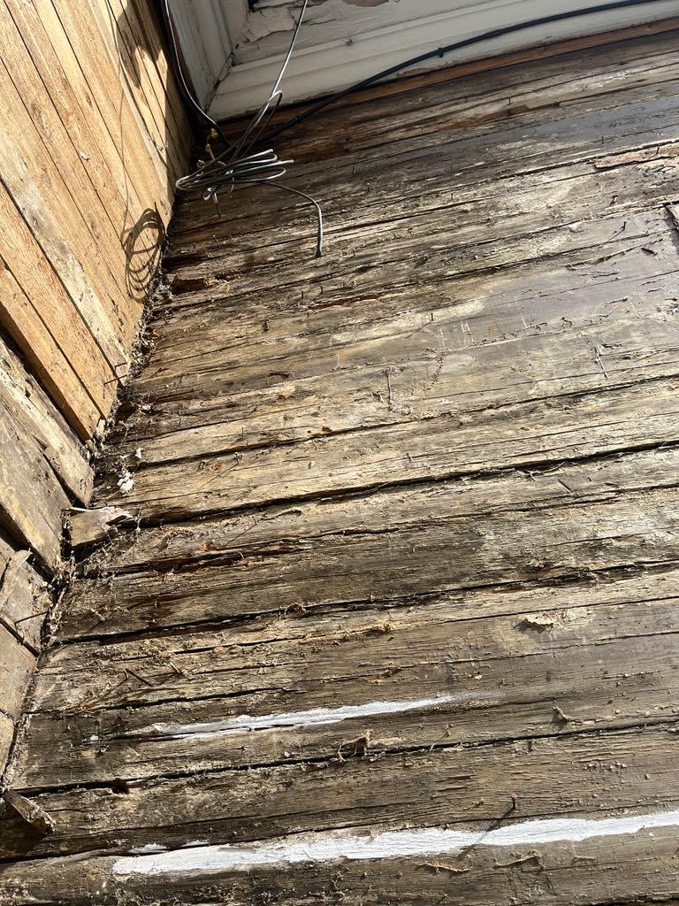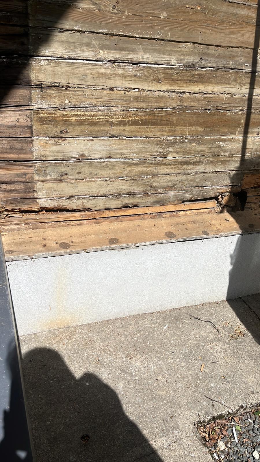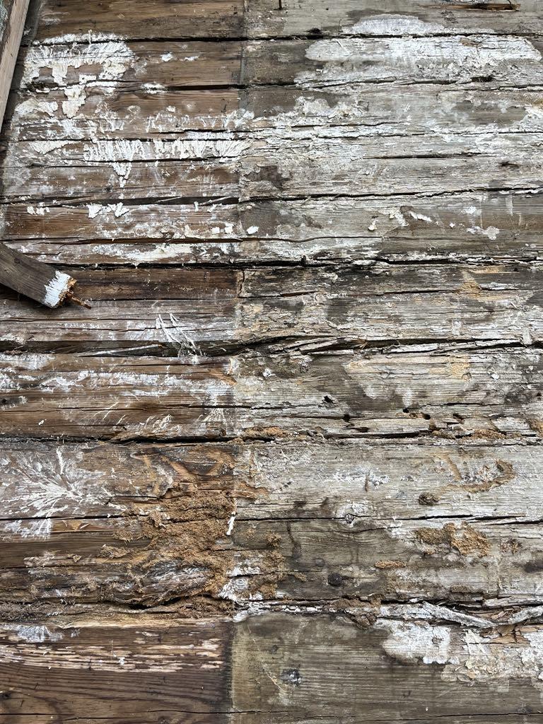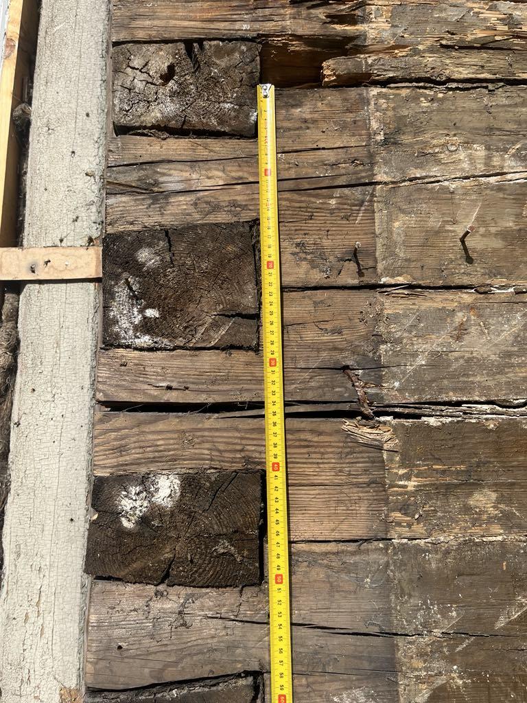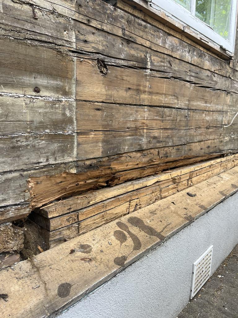 Vana suvemõis. Fassaad on eemaldatud ja selgus, et mõned kohad/palgid mädad ja vajavad vahtust/plommimist.