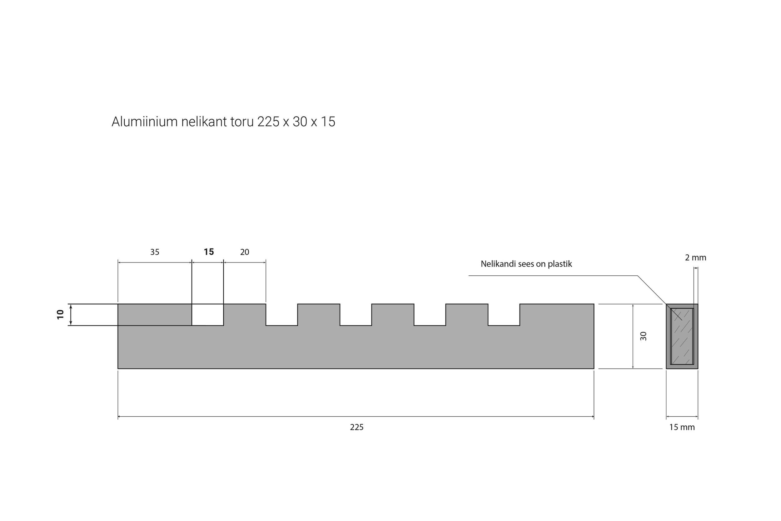 Detaili mõõdud on 225 x 30 x 15 mm.