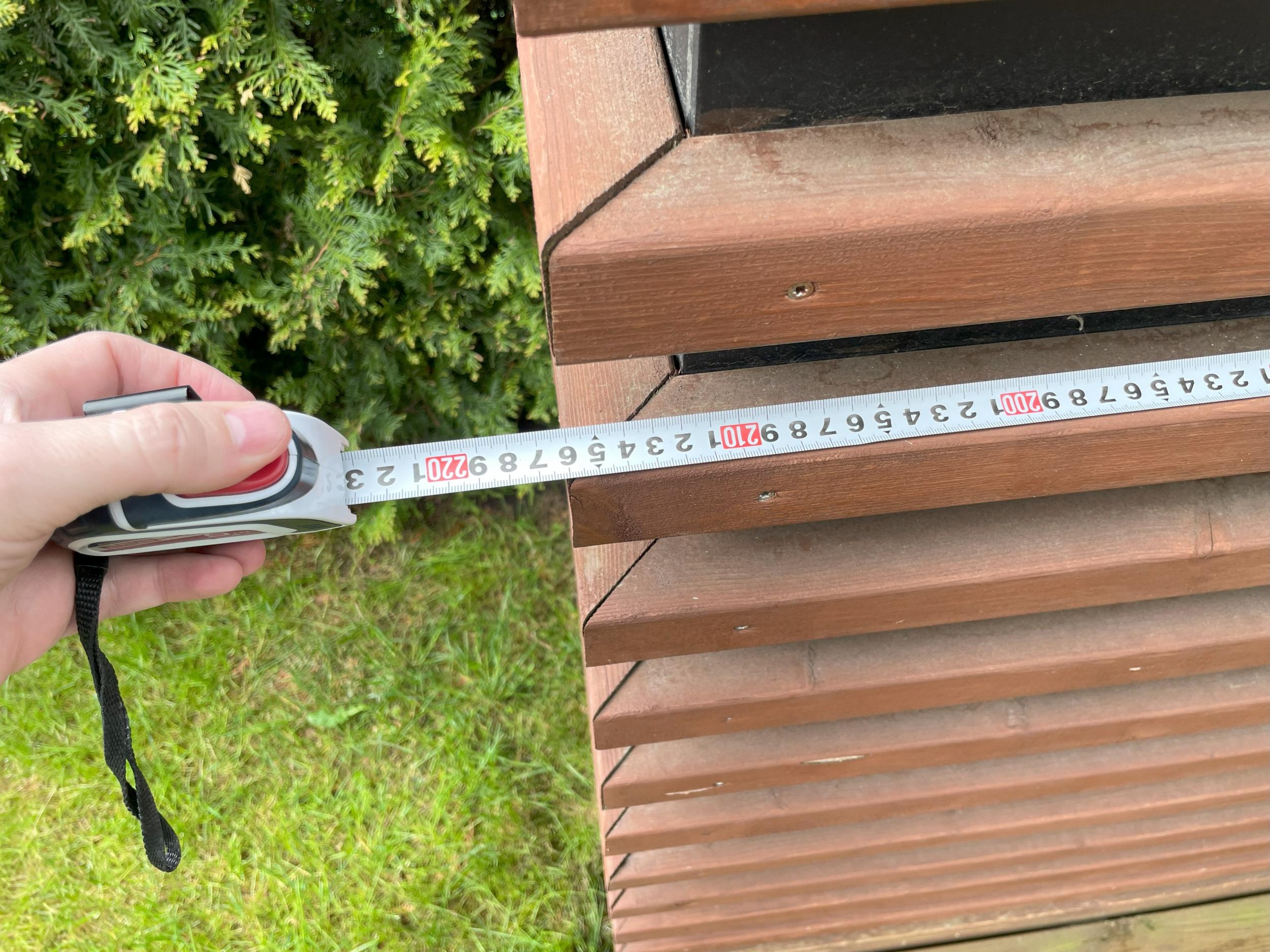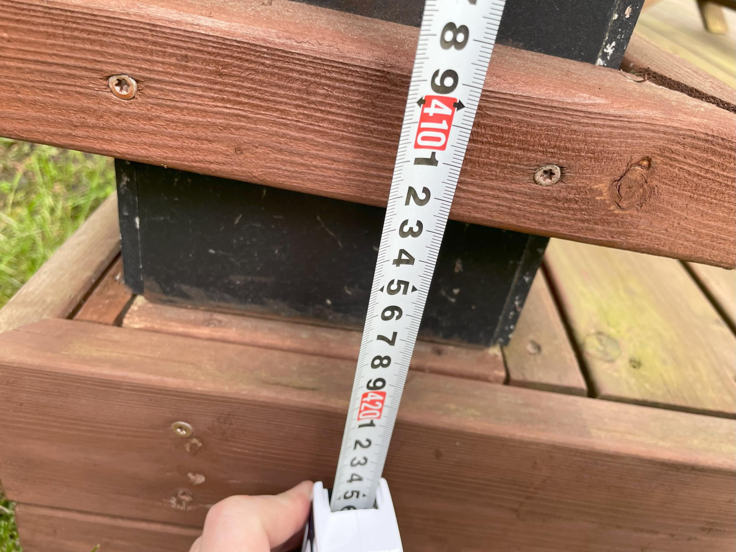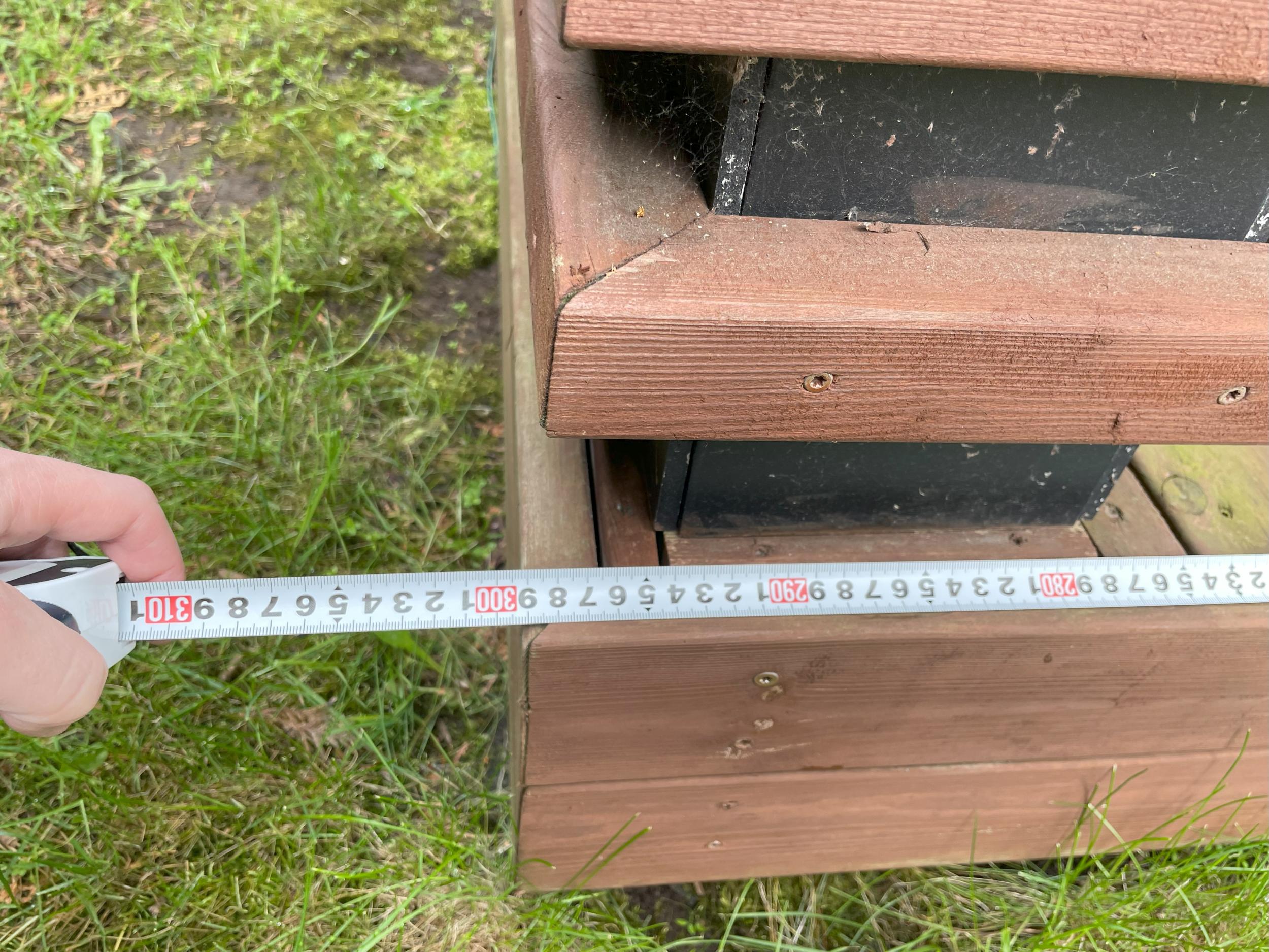 Vaja on terassi sein sirgeks saada. Terass ise on loodis kui terassi sein on maja poolt vaadatuna paremale kaldu. Terass ja ka sein toetub postidele. Vajalik on võtta lahti terassi sein, teha toestuse parandused ja panna kokku tagasi. Seina laius on 216 ja kõrgus 420 cm. Terassi sügavus 300 cm.