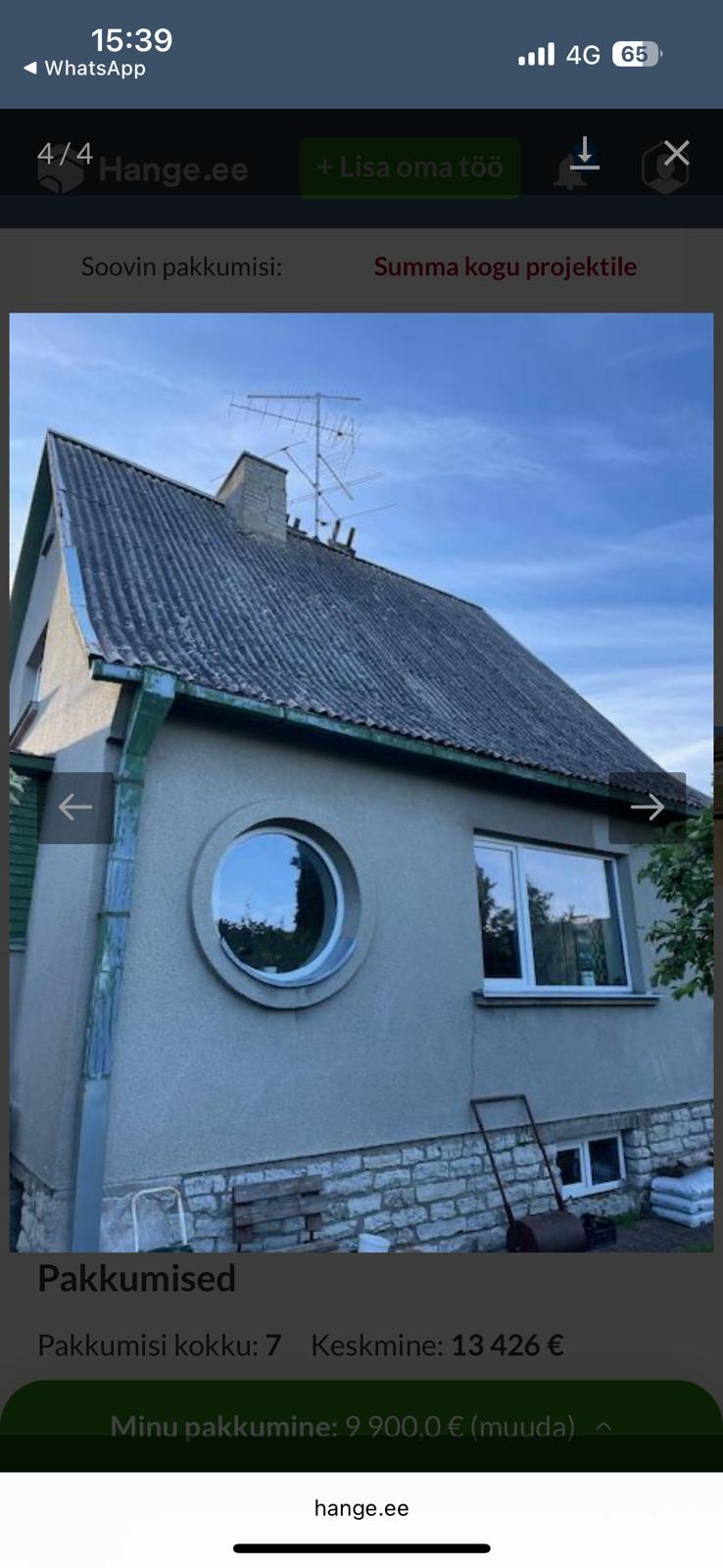 Pakkumine sisaldab 85m2 lammutust,aluskate,eterniidiga ja roovi paigaldust