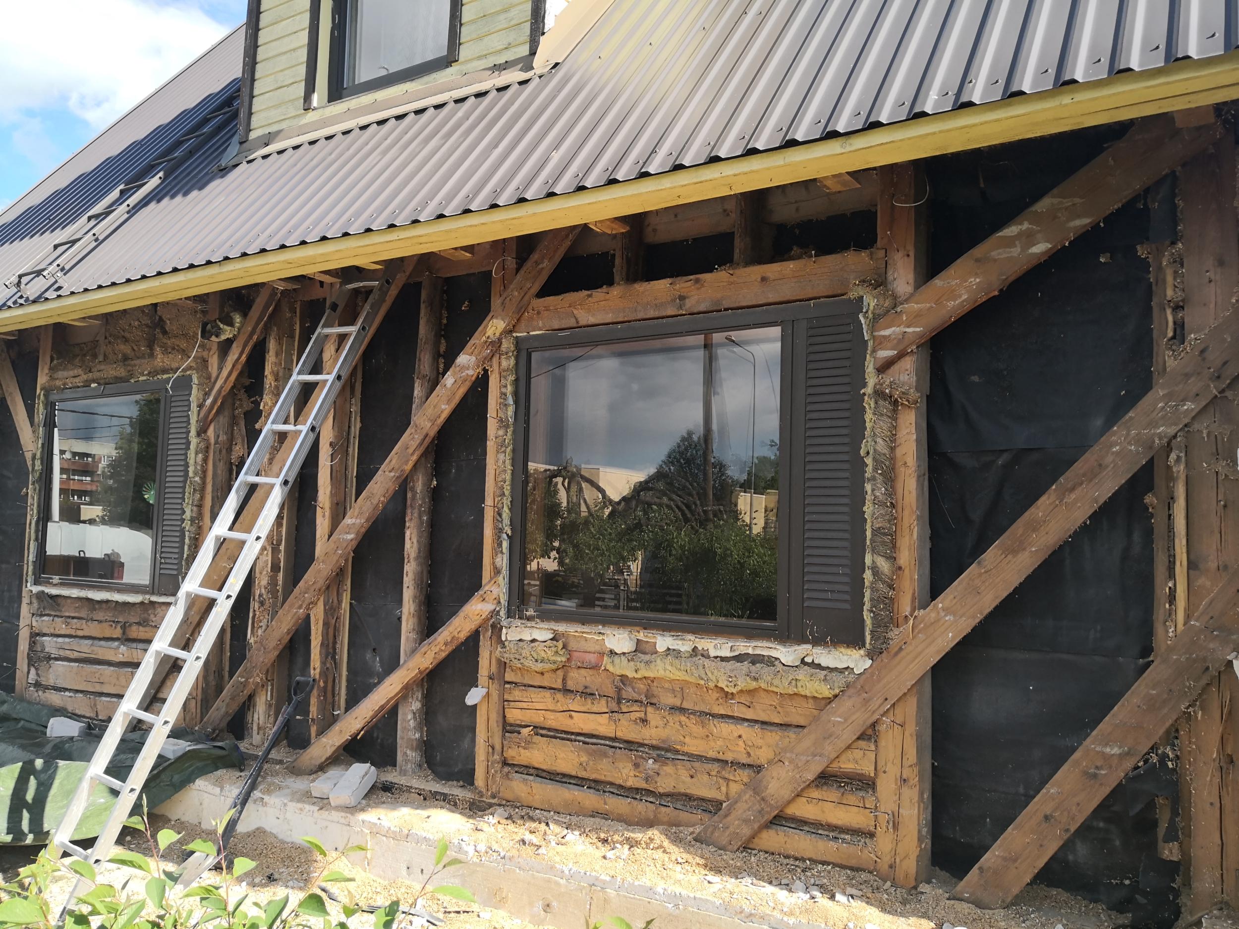 Hanke sisu - puitsõrestikmajale lisakarkassi ehitus soojustuse paigalduseks, koos lisatöödega. Fassaadi maht 72 m2. Piltidel olev telliskate on tööde ajaks kogu mahus eemaldatud. Pööningult on eemaldatud olemasolev isolatsioon ja täitematerjal.