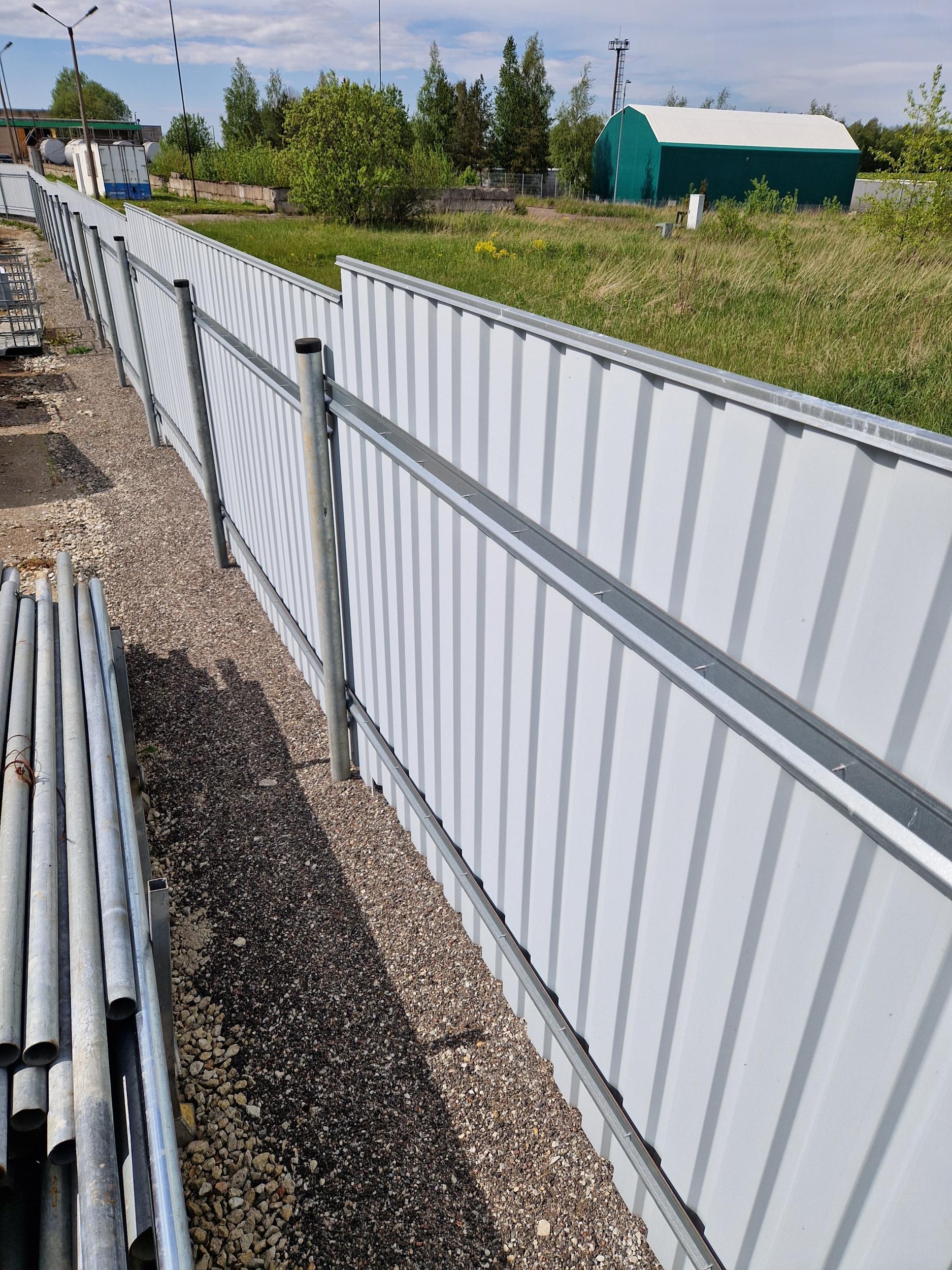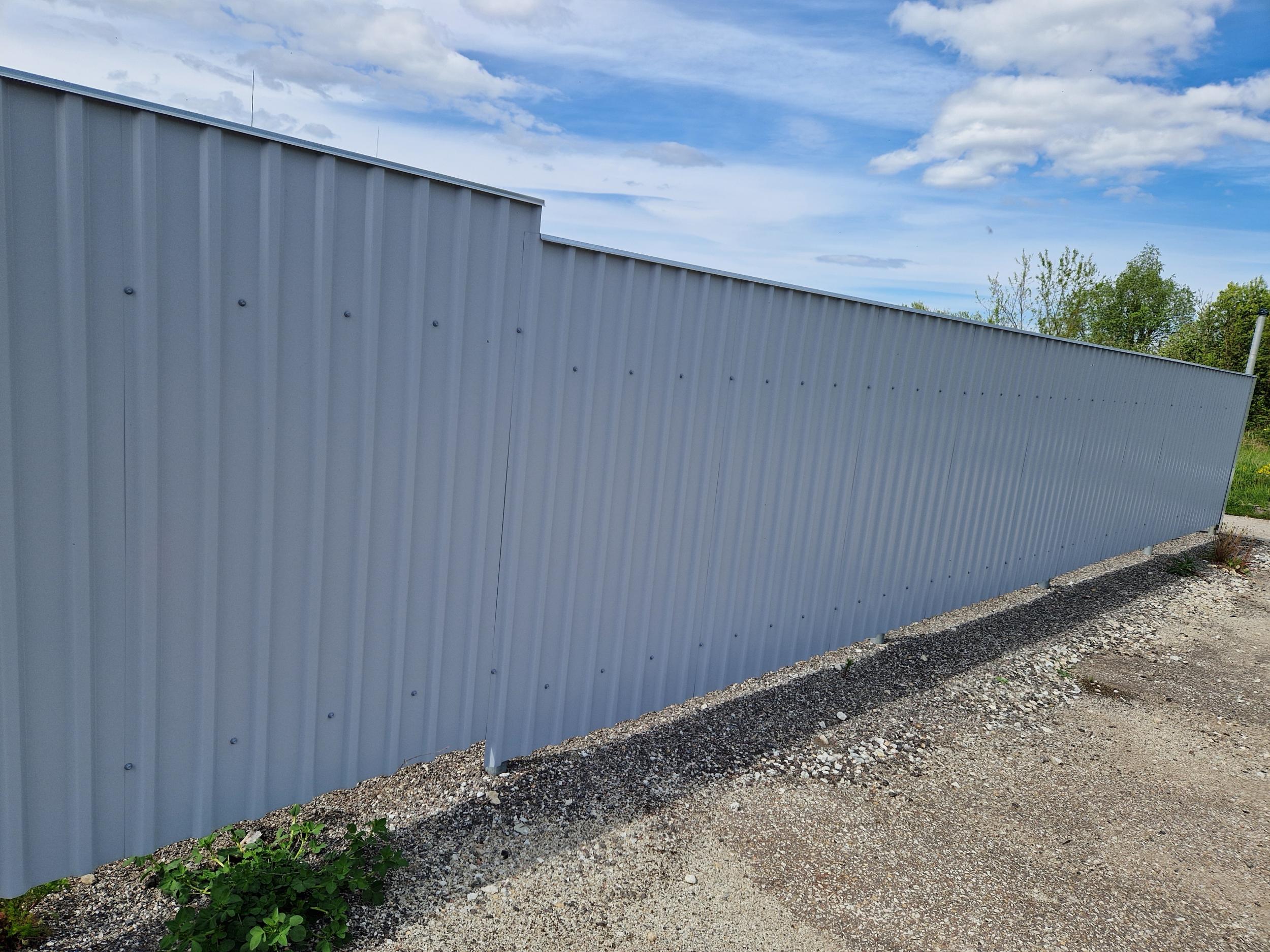Pakkumine sisaldab seina profiilplekist RR 22 aia paigaldust tsingitud ümmargustele postidele nagu on piltidel