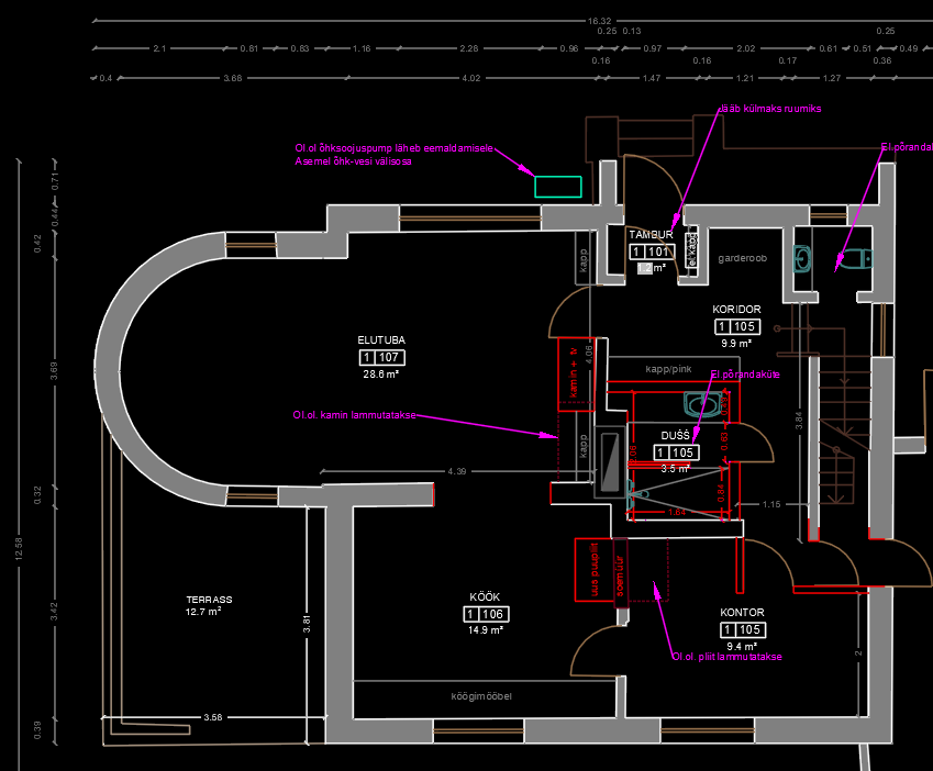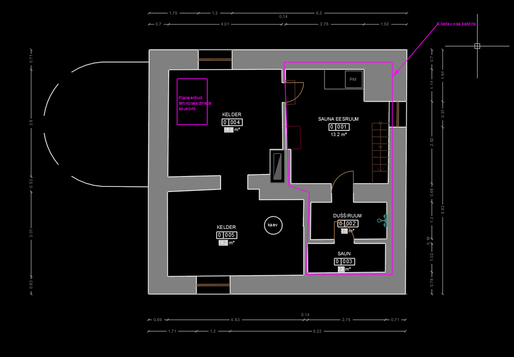 Tööd tuleks teha vastavalt küttesüsteemi põhiprojektile (tellimisel) keldris, 1.k ja 2.k. Keldrisse tuleb küte pooles ulatuses. Hetkel veel lahtine, kas keldrisse tuleb põrandaküte või radiaatorid.