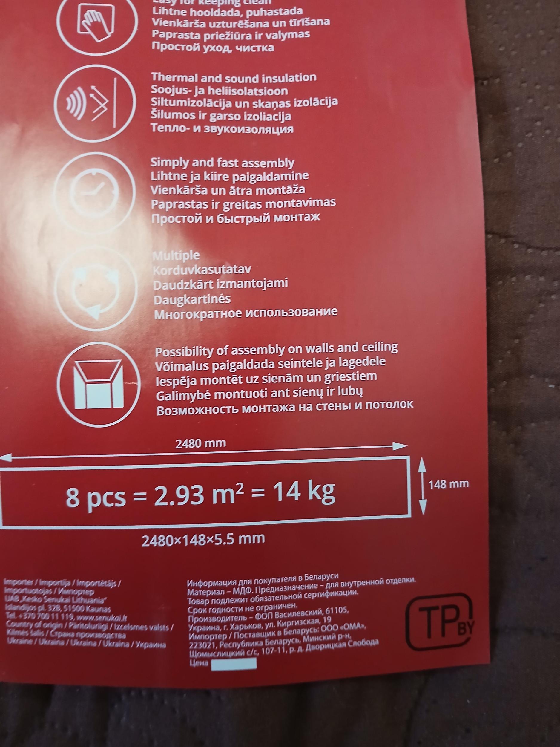 Hinnas roovituse, MDF paneelide ning nurgaliistude paigaldus ja hange.ee keskkonna tasu. Arvestatud hinnaga 12€/m2. |