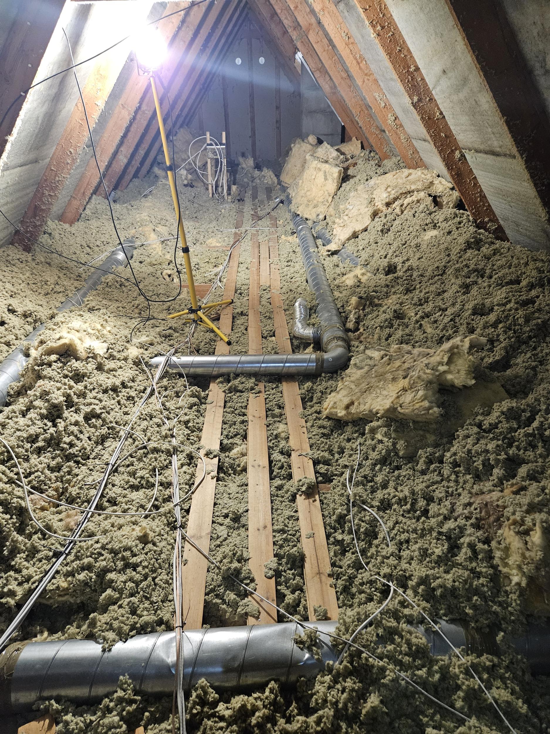 Maja ostes oli sellele juba ventilatsioonitorustik paigaldatud, eelmine aasta paigaldasime Airobot S2 soojust- ja niiskustagastus seadme, teostati torude puhastus ja rõhkude mõõdistus. Pärast süsteemi käivitamist ilmnes siiski, et puuduvad mürasummutid ning pööningul tehtud 2-korruse ventilatsioonitööd on teostatud lohakalt.