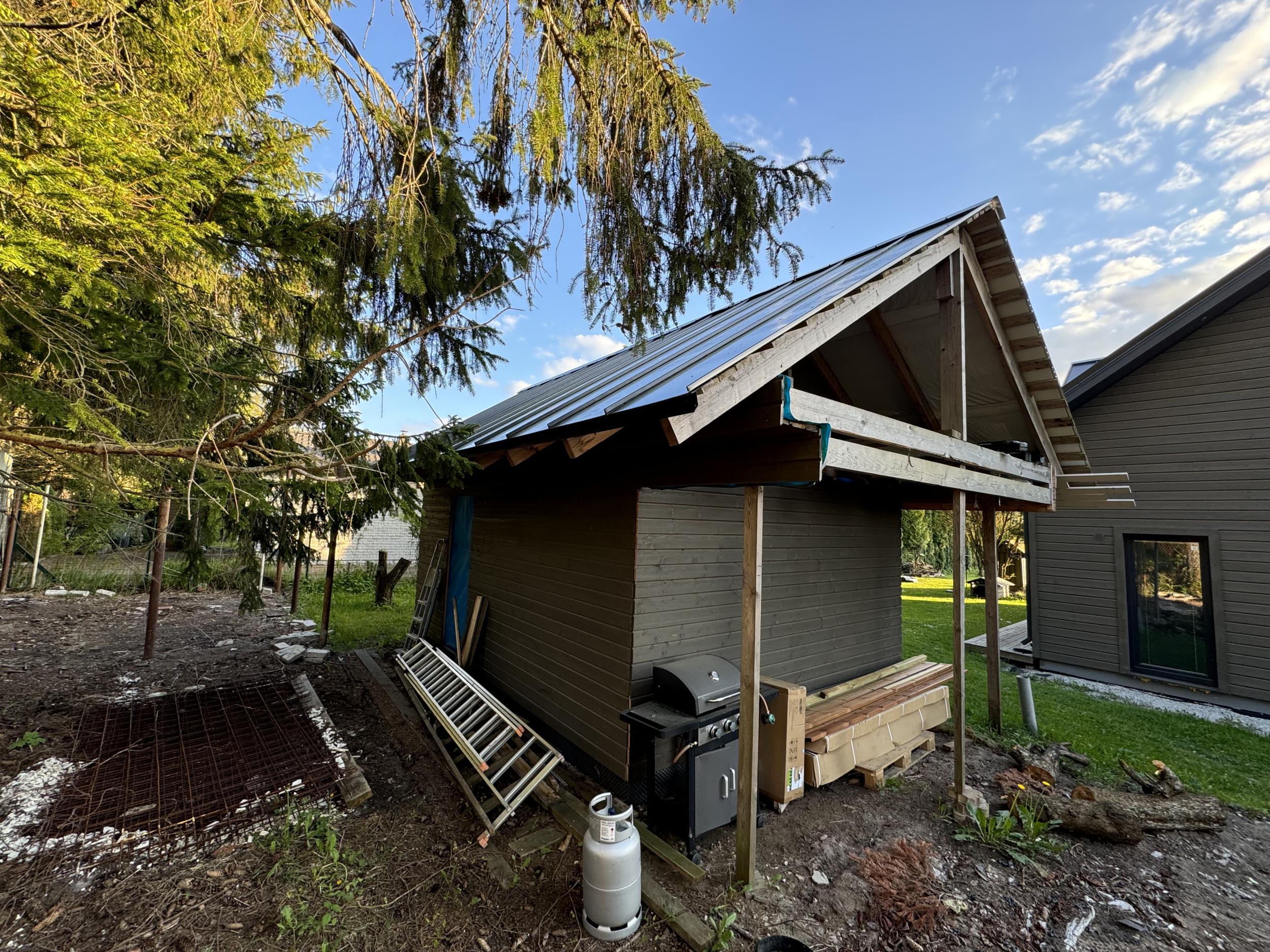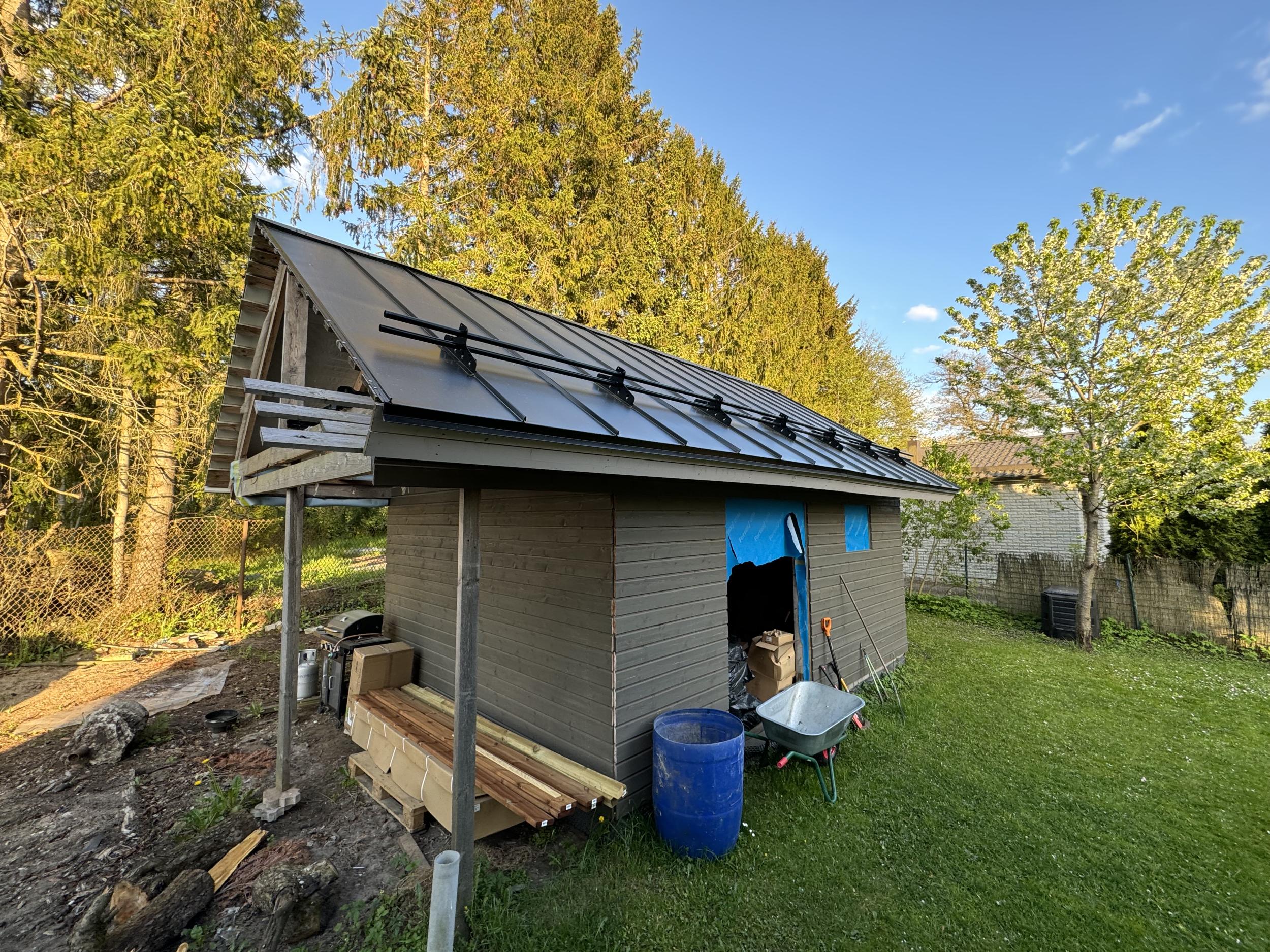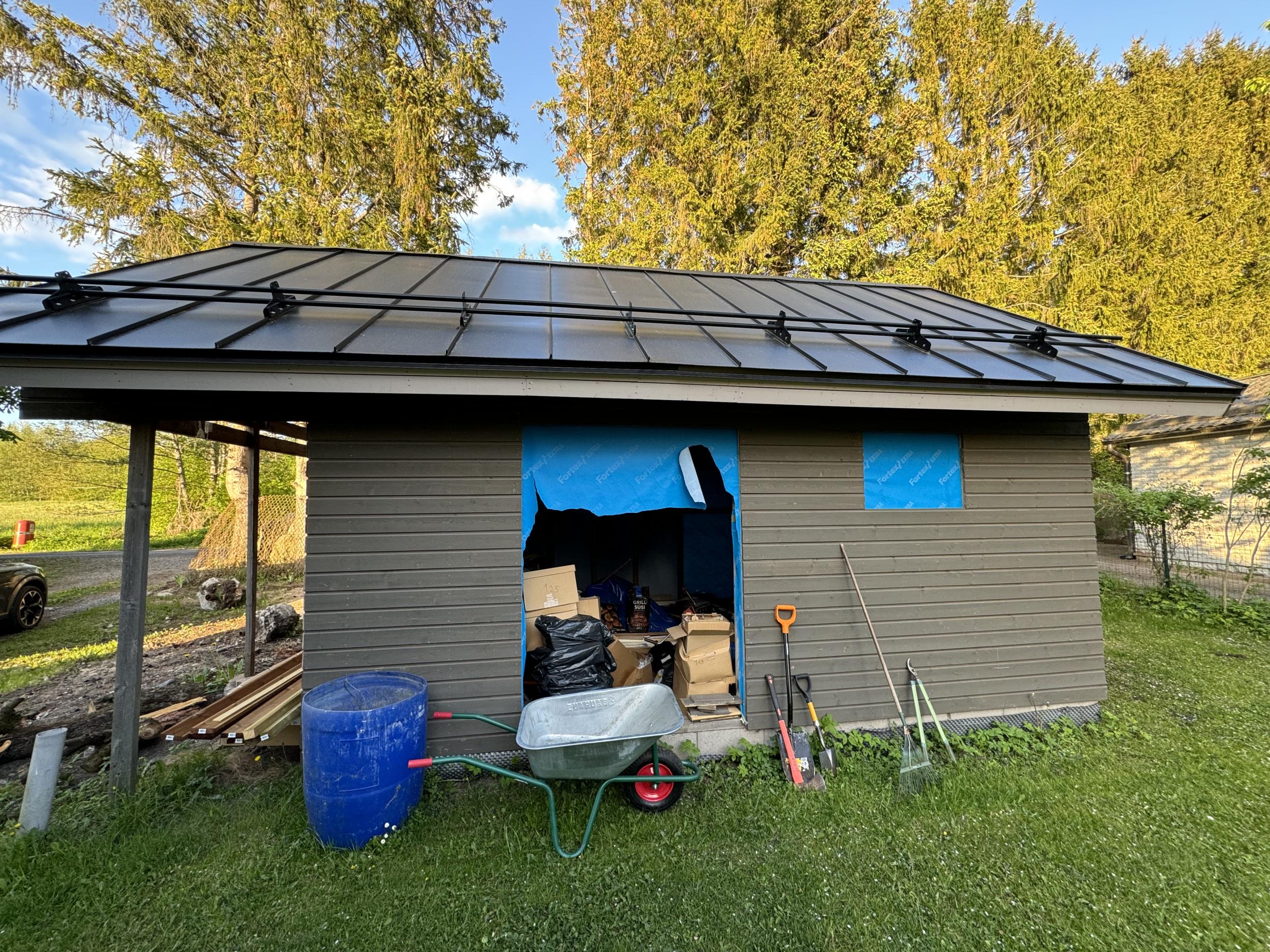 Sooviksime kuuri lammutust ilma jäätmete utiliseerimiseta. Tegemist on pooliku ehitusjärgus kuuriga, mis on puitkarkassil. Kuuri pikkus on 6,2m ning laius 4,1m. Katus on kuurist endast veidi laiem ja mõõtudega 7,7 x 5,2 m.