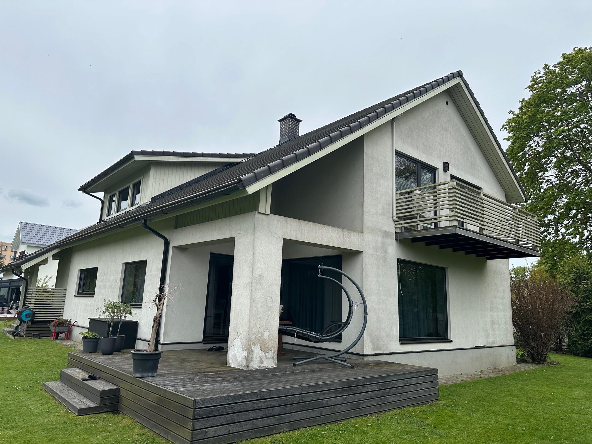 Katmine, puhastus, samblatõrje (vajadusel), krohviparandused, Caparol silikoonvärviga värvimine 2x. Tõsteseade või telling (katuse hari ca 8,5 m).