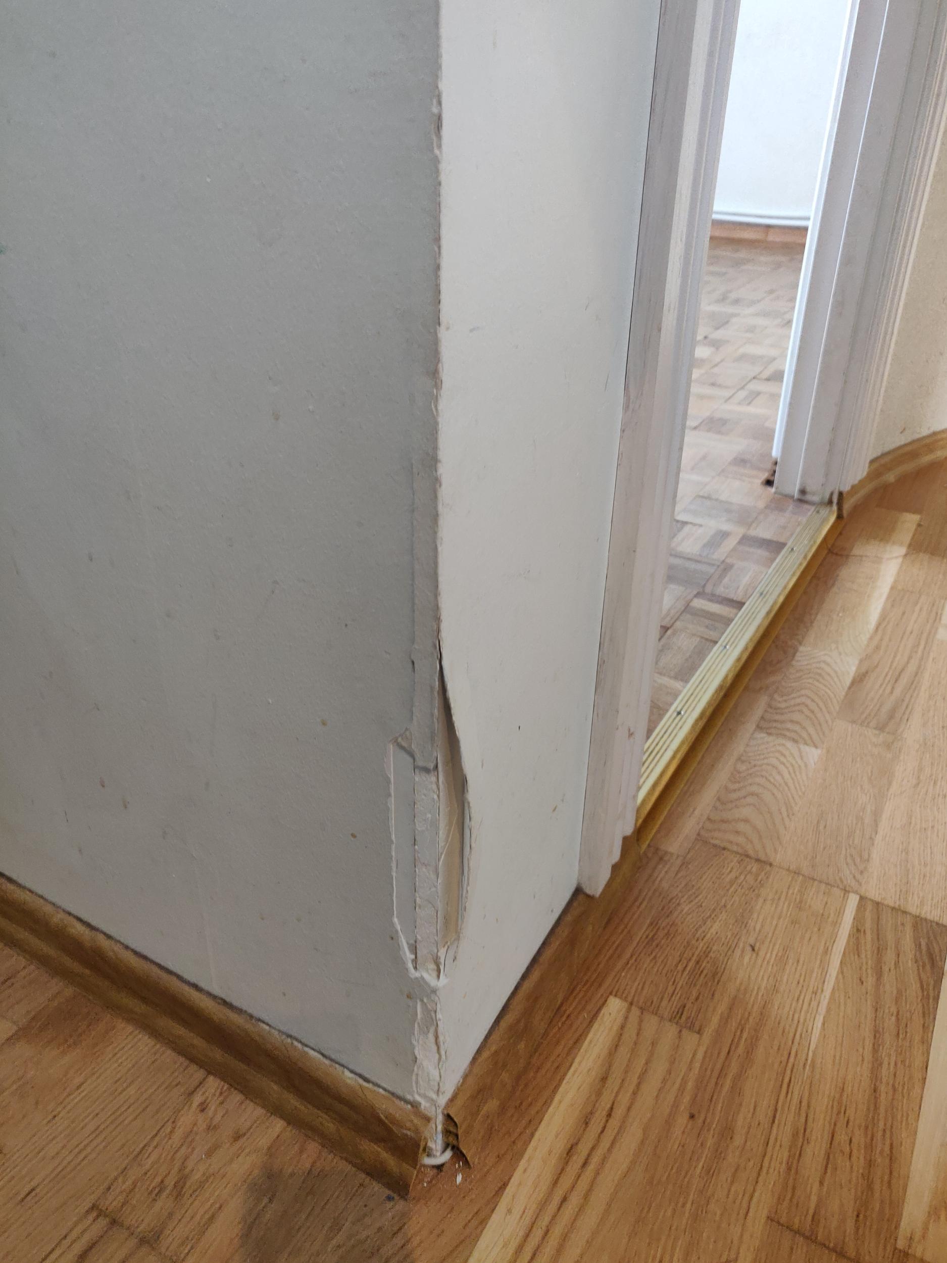 • Vannitoa ukse tagune koridori sein: eelnevalt parandatud auk tasandada ja värvida (vt pilti)
