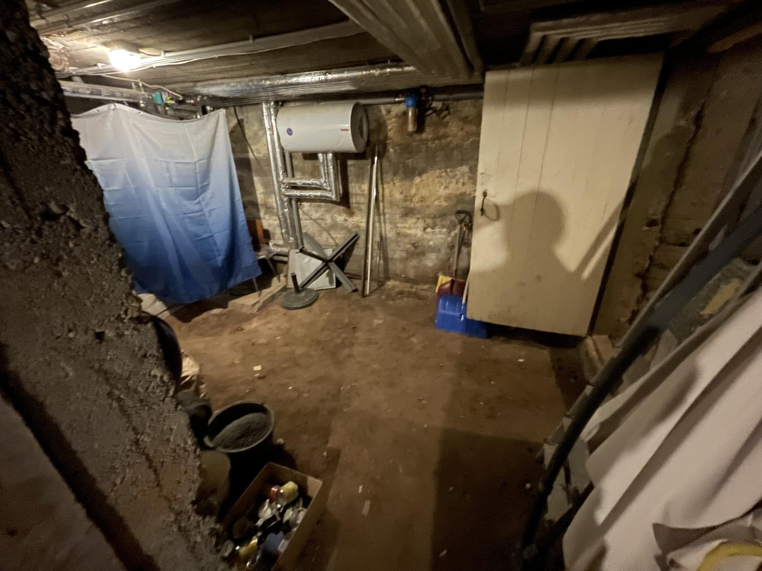 Keldrile on ligipääs hoovipool asuvast tagumisest trepikojast ja akendest, mis asuvad nii maja ees kui hoovipoolses osas (pildil näha üks maja ette jääv aken).
