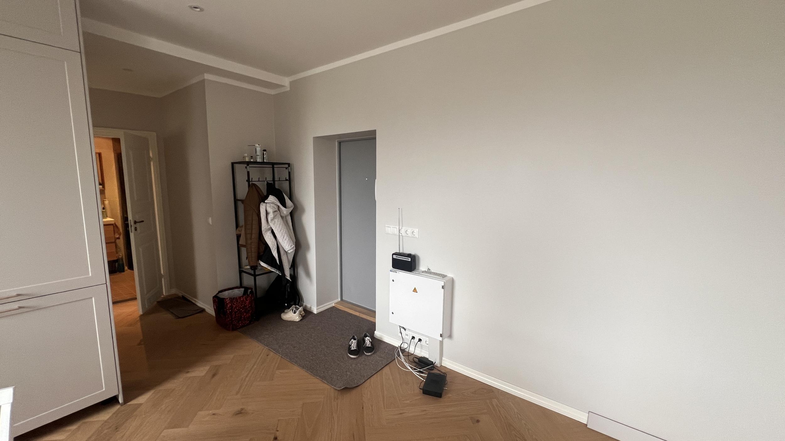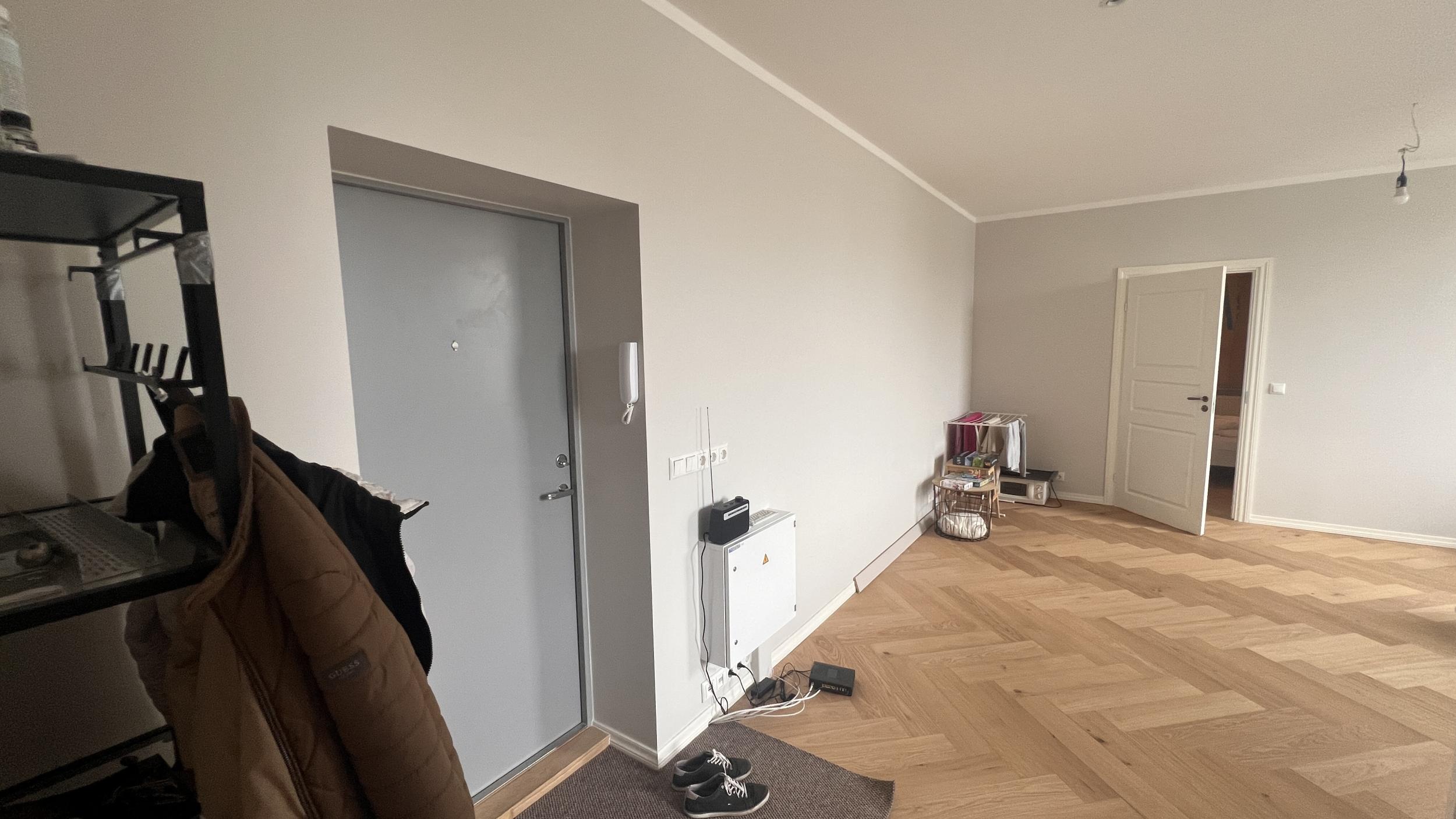 Töö sisu on ehitada välisukse juurde kipsist sein (mõõdud pildil). Olemasolev välisukse sein on tellistest ning krohvitud. Seina sees on juhtmestik mis ei tohi töö käigus kahjustada saada. Lagi 2.75m, kipsplaat. Päris lagi ca. 30 cm kõrgem. Põrand on puidust taladele toetuv osb + liimitud spoonparkett. Ülejäänud põrand ei tohi töö käigus kahjustada saada. Uue kipsseina ja krohvitud seina vahele on plaanis paigaldada stange riiete jaoks, seega tuleb kipsseina sisesein tugevdada (osb või näiteks kõvema kipslaadiga). Seina sisse tuleb panna isolatsioonimaterjal. Pistikupesade paigaldamine ei ole koheselt plaanis, kuid seina sisse on vaja vedada 2.5mm² läbimõõduga juhtmestik kahe pistikupesa jaoks, juhuks kui kunagi tulevikus on plaanis pistikupesad siiski paigaldada. Sein tuleb pahteldada, värvida ja viimistleda, paigaldada liistud.