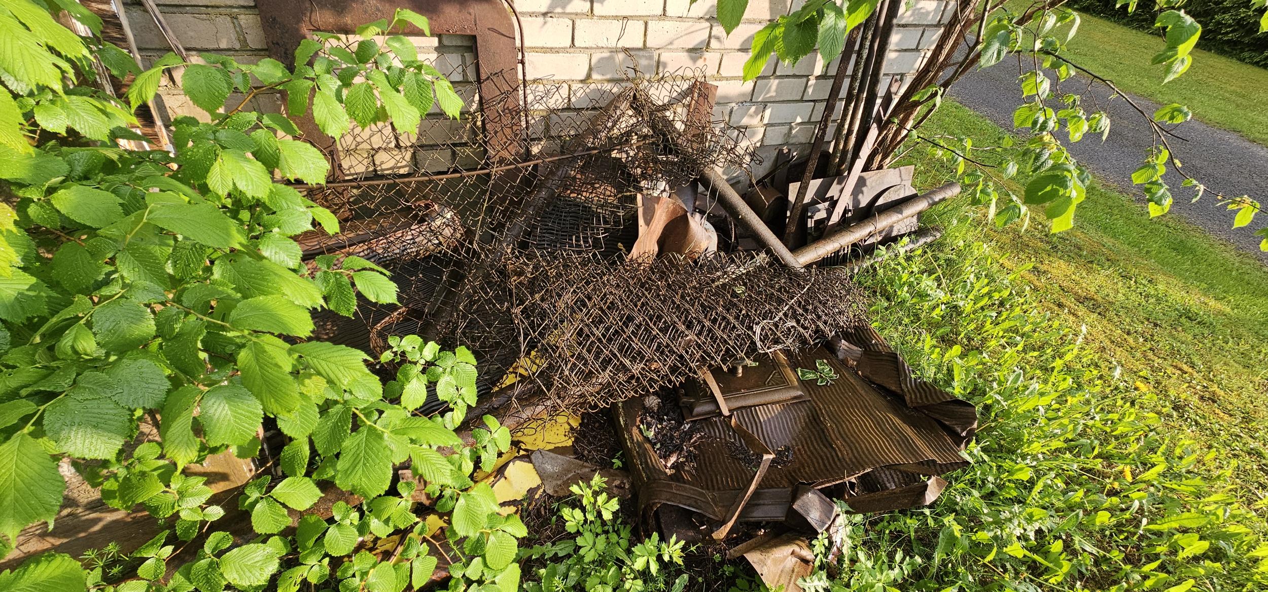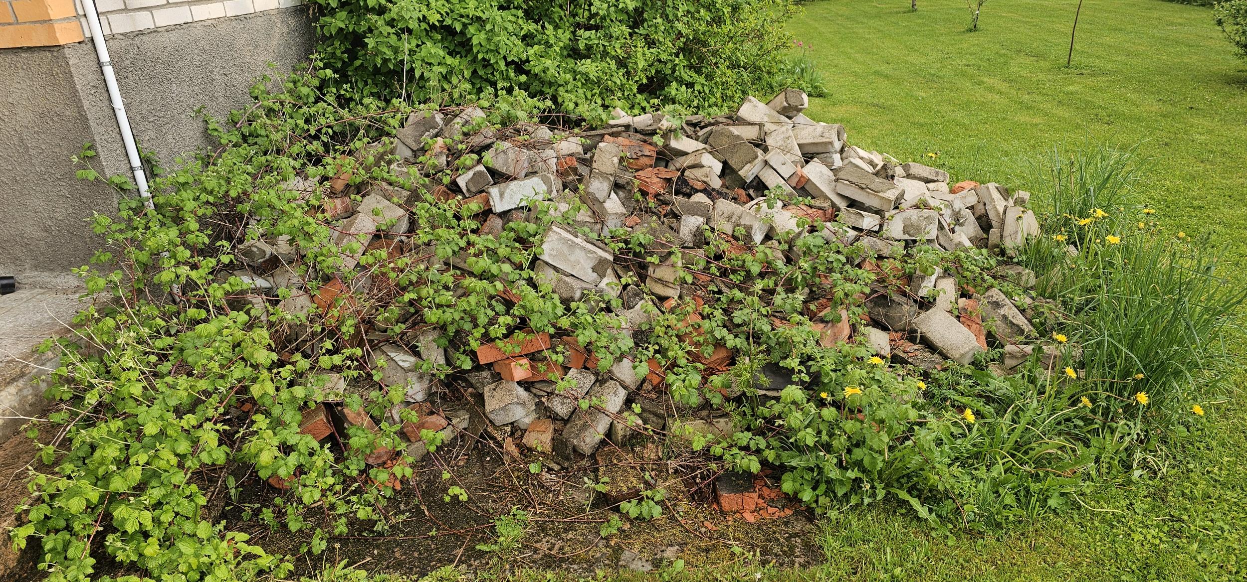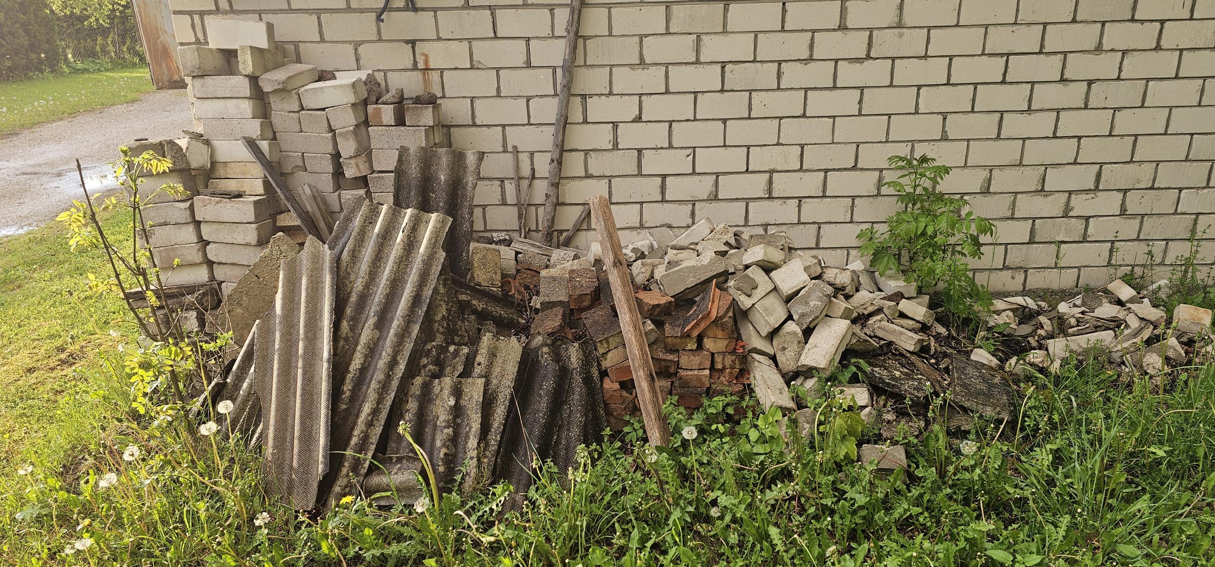 Enamuses on tellikivid, paar puidust ust ja vanametall. Pildil nähtavat eterniiti on väike kogus ja selle saab TASUTA ära anda kohalikus jäätmejaama.