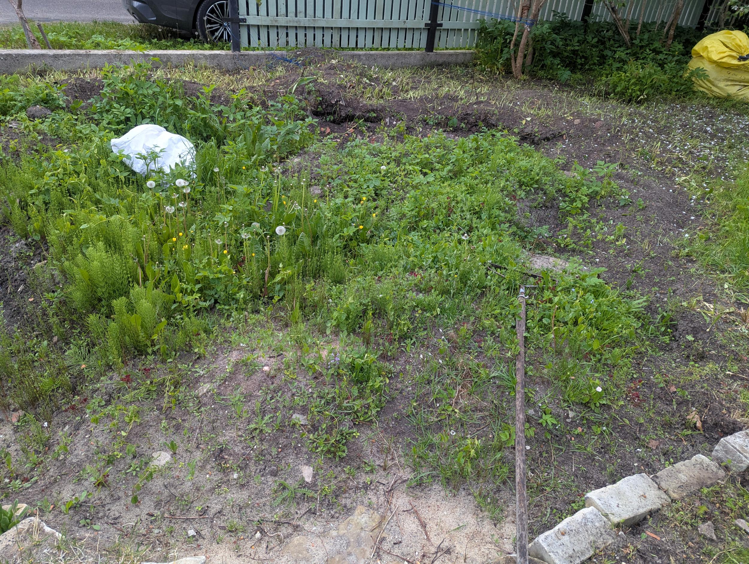 30 ruutmeetri suurune ala 2-3 labidatäie sügavuselt läbi kaevata ja muld sõeluda käsitsi läbi võrgu puhtaks kividest ja umbrohujuurtest. Võrk olemas, 1 labidas ja 1 kühvel ka. Sõeluda u. 15 kuupmeetrit pinnast. Pinnas pigem kerge, liivane muld.