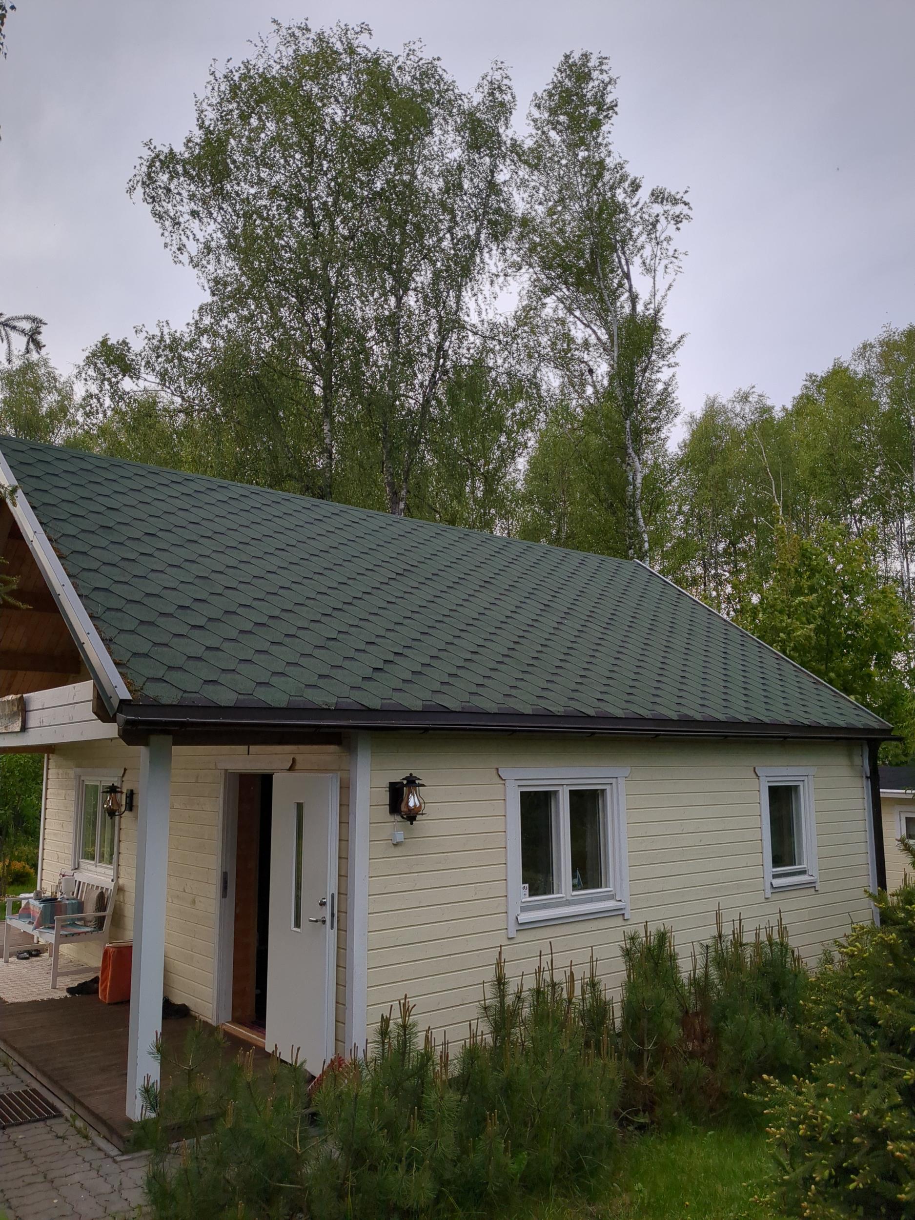 Tere! Minu pakkumine katusetöödele. Hind sisaldab vajaliku tuulutuse, uue aluskatte, roovitise ja trapets pleki paigaldust tellija materjalidega. Hinnas ka rennide õigele kõrgusele tõstmine ja ühe rea räästalaudade lisamist, kuna katuse pind tõuseb ca 75-95mm Tööde teostus 9-11. juuli. Enne valiku tegemist palun täpsustada üle.