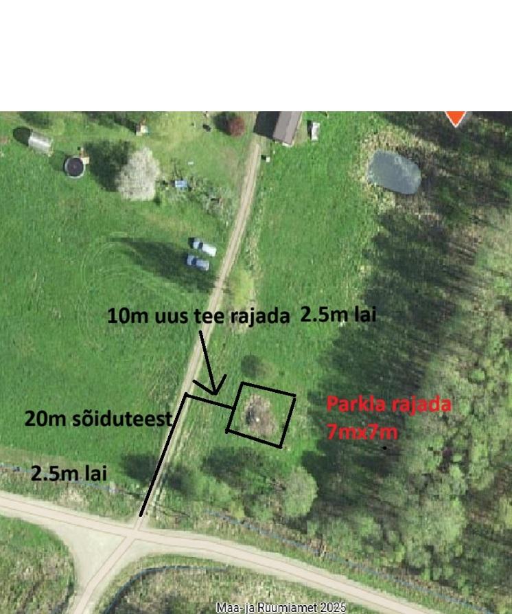 umbes 10 meetrit mullakihti eemaldada ja uus kruusatee rajada, sinna otsa 7x7 parkla.