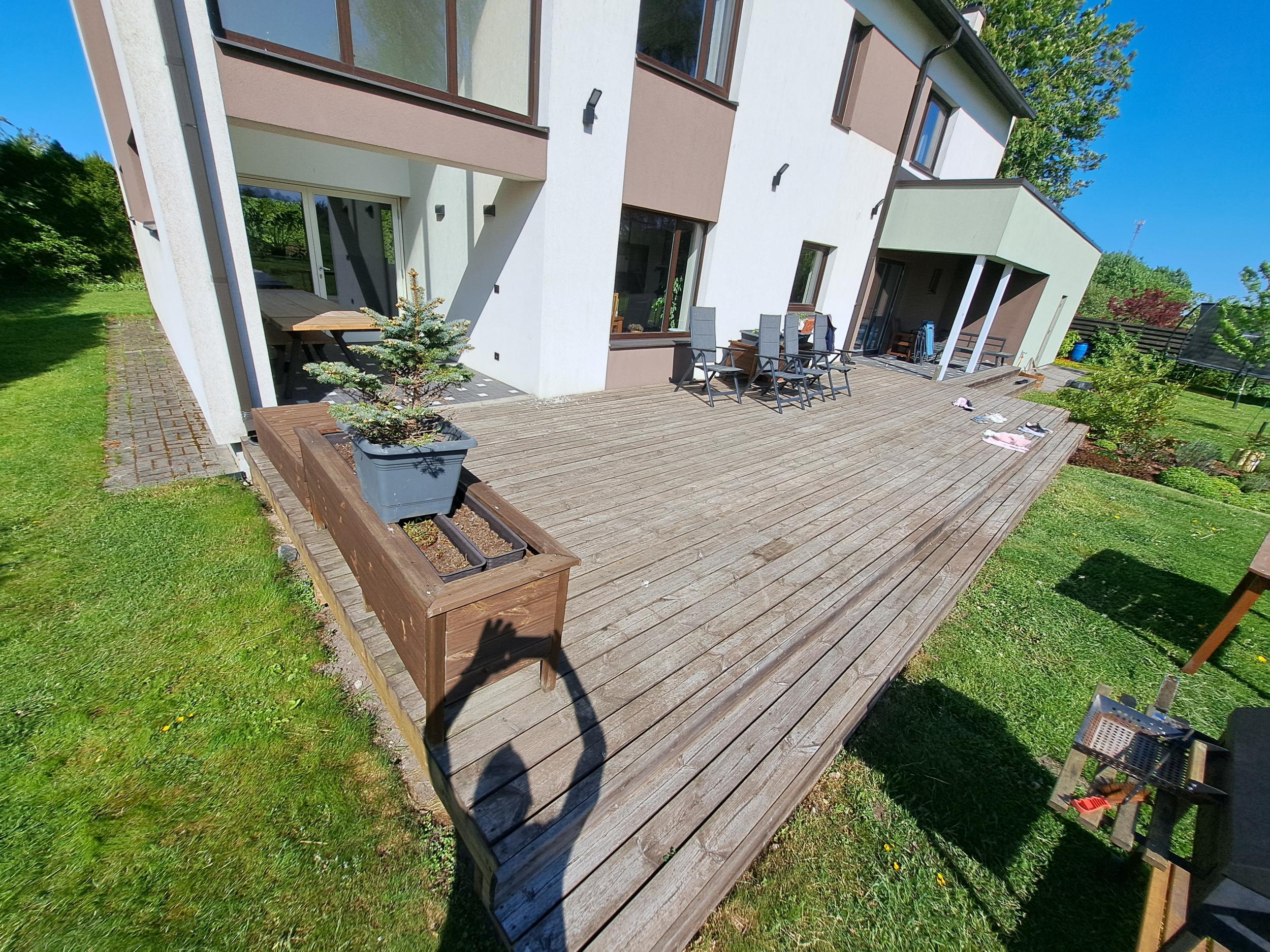 Teraasilauad on endal olemas ja plaanis ise paigaldada. Aga võib pakkuda nende paigalduse töö teenust eraldi. Lauad paigaldatakse klambritega.